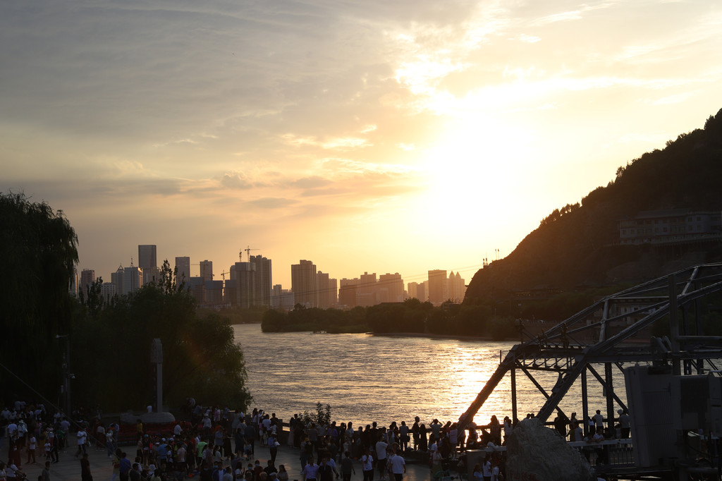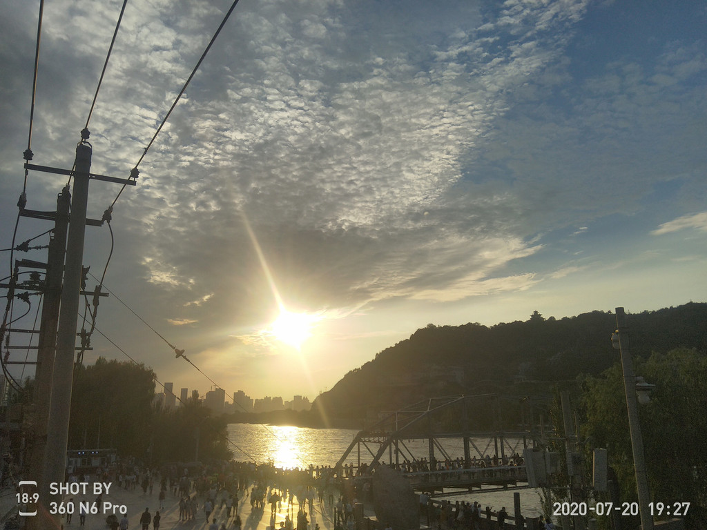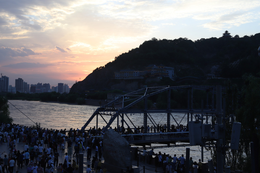 此时天色渐晚,立马赶到黄河铁桥处,准备在那里拍黄河落日,怎奈虽是晴间多云天气,但气候干燥,空气中水分很少,无法折射太阳光形成好看的晚霞。但既来之,则拍之,好歹也是在兰州拍的黃河落日呀!这样的机会可是不多的。