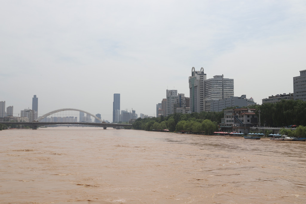 乘公交车在中山桥站下车(黄河铁桥的正式名字叫中山桥)。白天的大桥上行人和游客不多,只见浑浊的滚滚黄河水由西向东流,最近黄河上游也在经常下雨,所以黄河涨水不少,把好多河滩上的休闲和游玩场所都淹了。