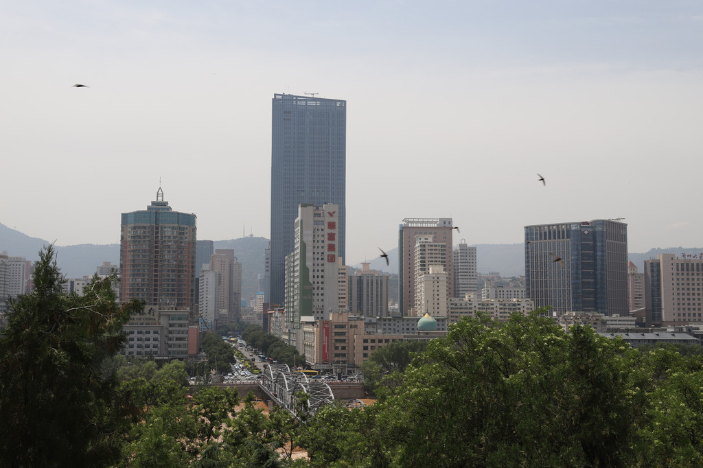 从白塔山的不同高度和方位看兰州闹市区