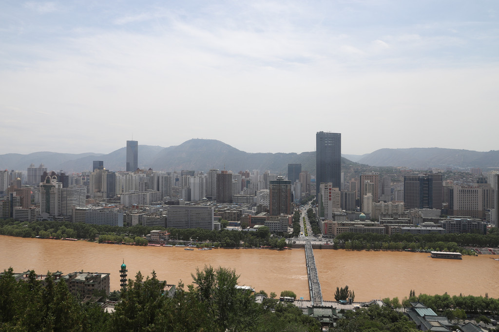 在不同的高度,观看兰州的全景是不同的情景。兰州呈长条状,两边是山,中间一条黄河,只有沿山的走向发展,城区主要在黄河南岸,正对着黄河铁桥的黄河南岸是兰州主要的闹市区-西关什字。