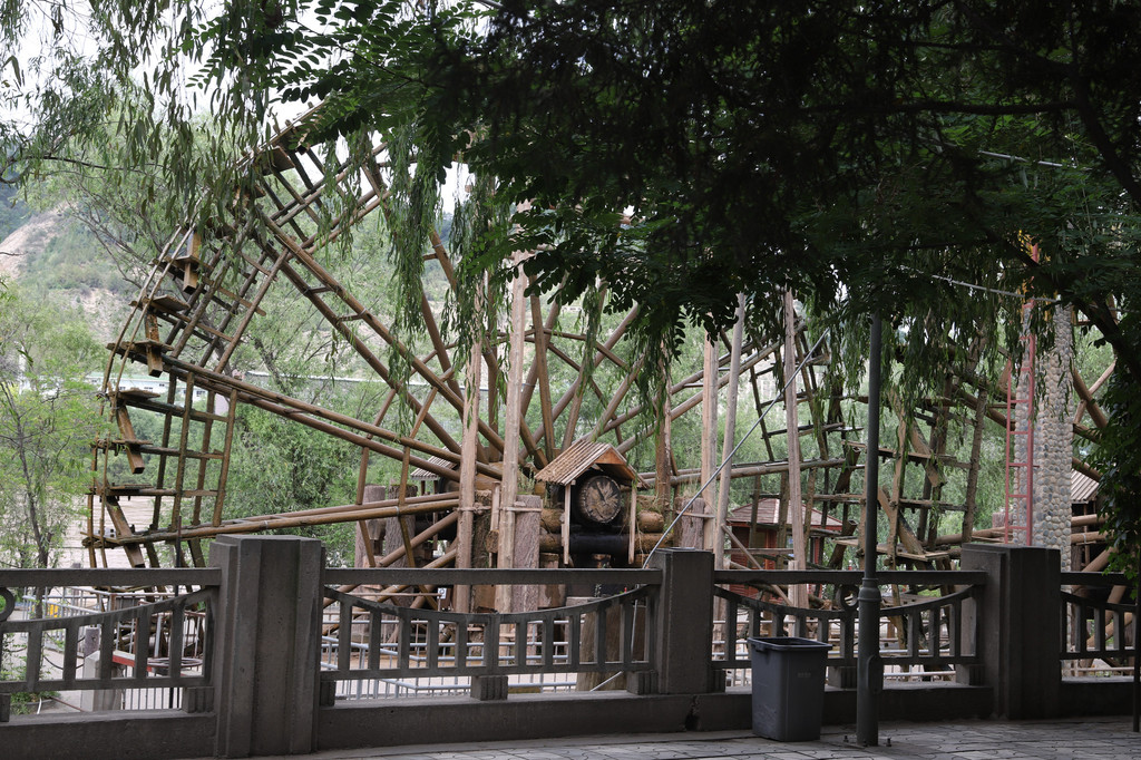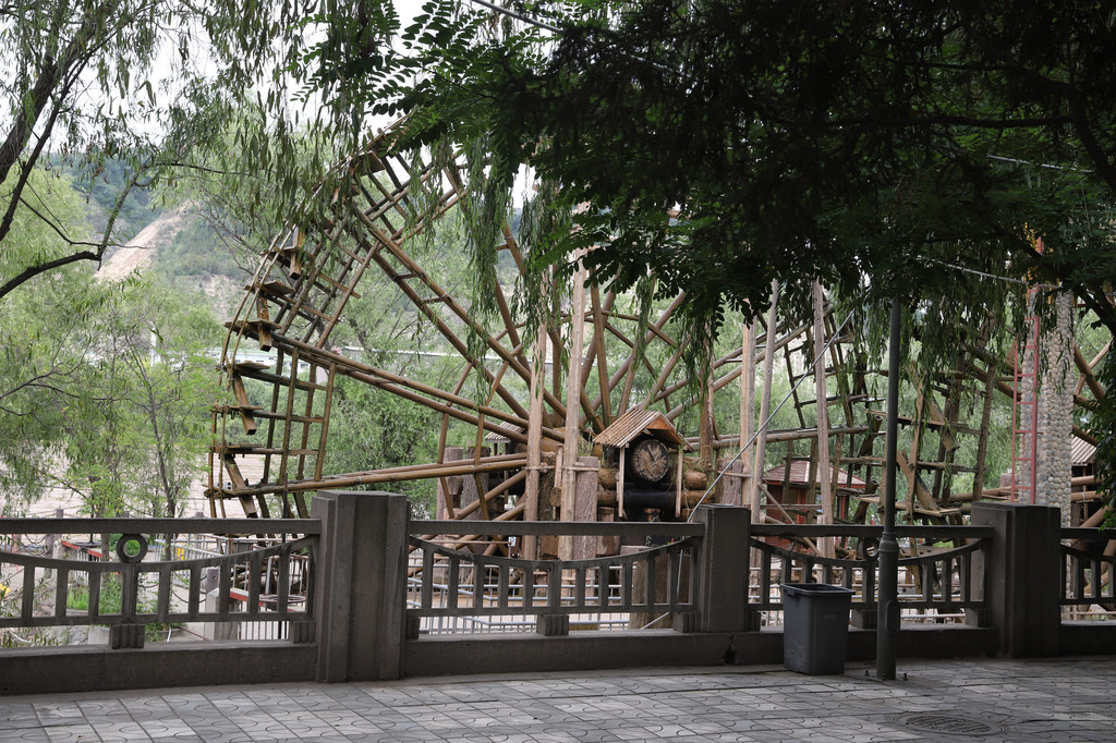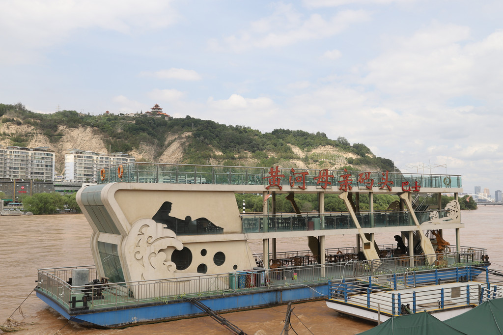 从白塔山公园下山,就过黄河铁桥沿南岸的黄河风情大景区的步道漫步行走景区,由于涨水,原来的河滩都淹了,所以一些景点和旅游项目都已关闭或取消。
