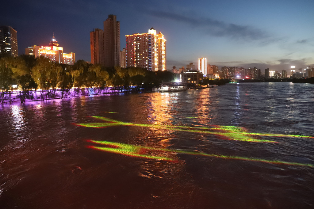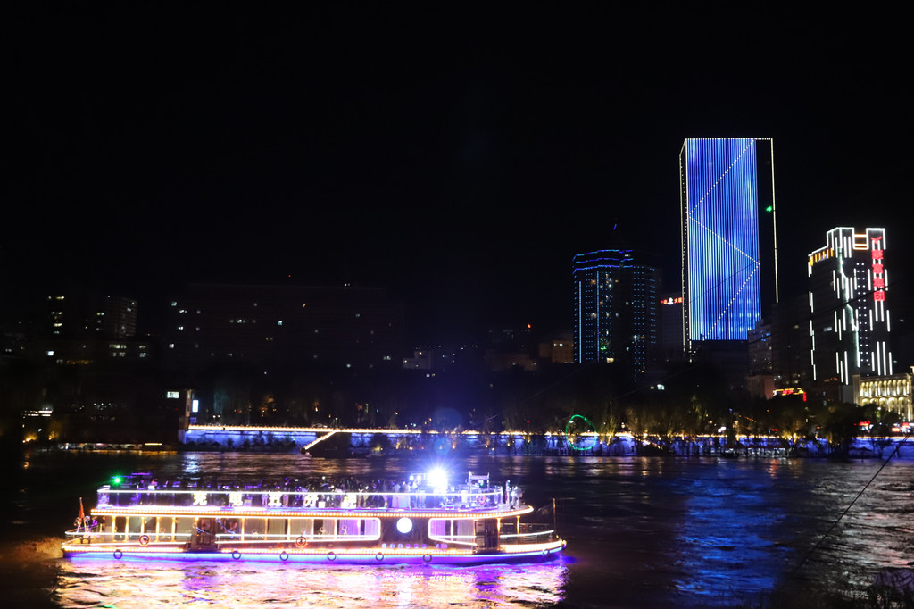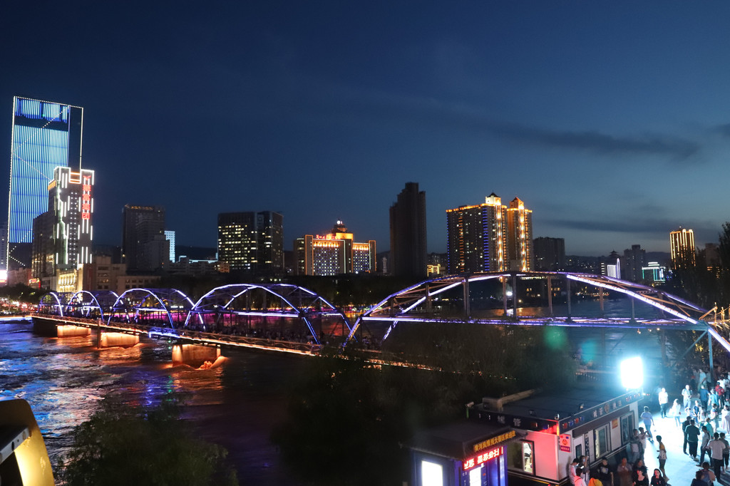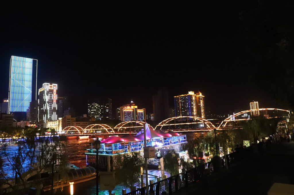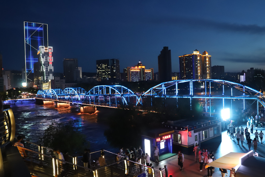 黄河铁桥的周边是兰州市的闹市区,夜晚在灯光的衬托下,黄河流水呈彩色,高楼大厦都被装饰的分外美观大气!