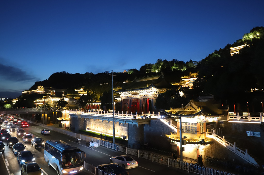 夜幕下的白塔山公园