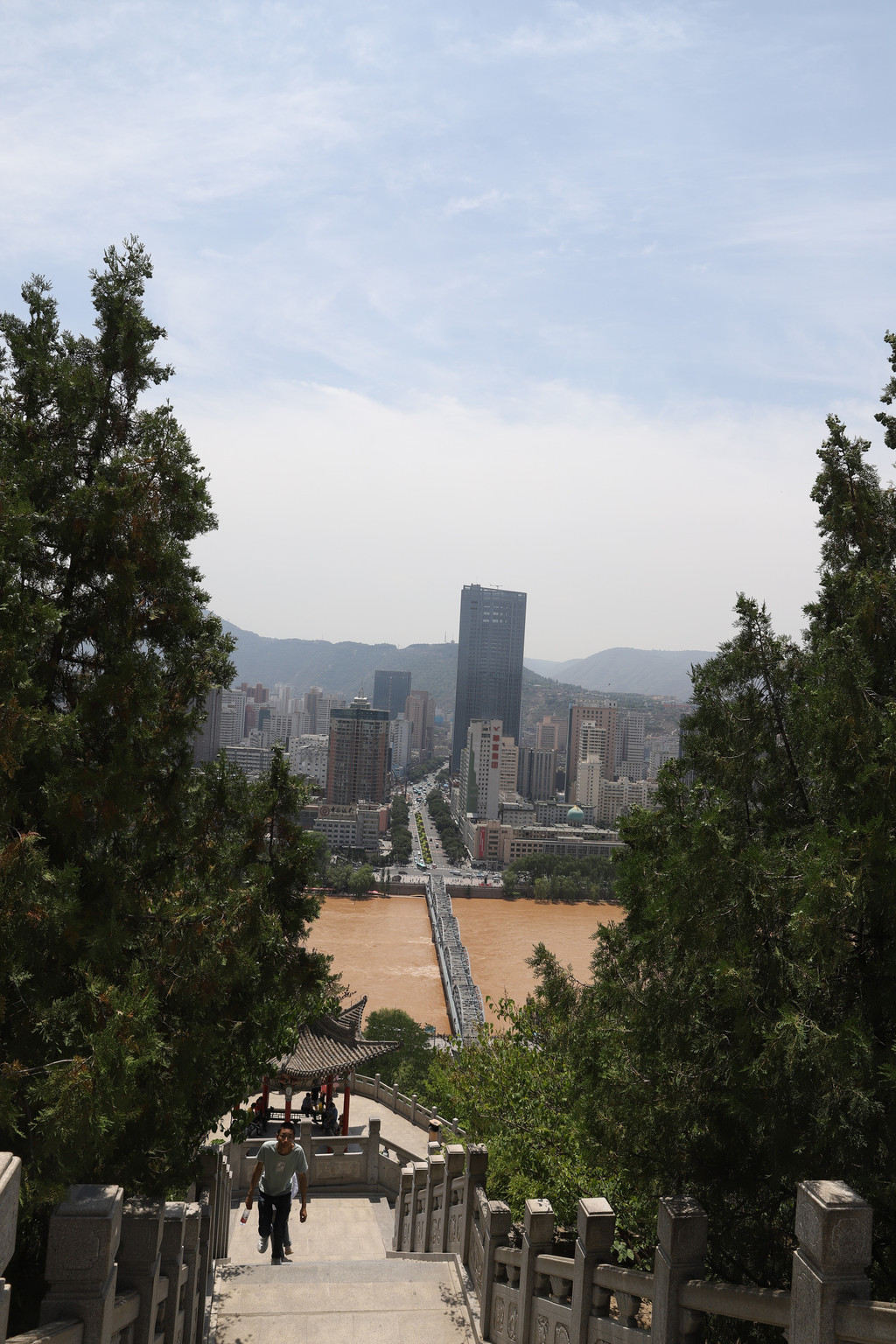 20号主要计划是登白塔山公园观赏兰州的全景。拾级攀登白塔山公园,感到很轻松,一是天气给力,多云天气,不到30度,一点都不热。二是登山的路修的很亲民,台阶不多也不陡,还有不少路是缓上坡,可慢悠悠走,也不费力。三是上山的路边随处都设置着休闲条椅,可随时停下来休息休息。当然山不太高也是不累的原因之一。
