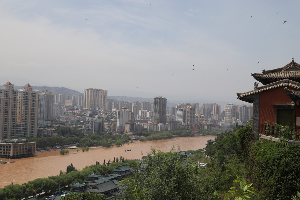 在白塔山上俯瞰兰州市的市景