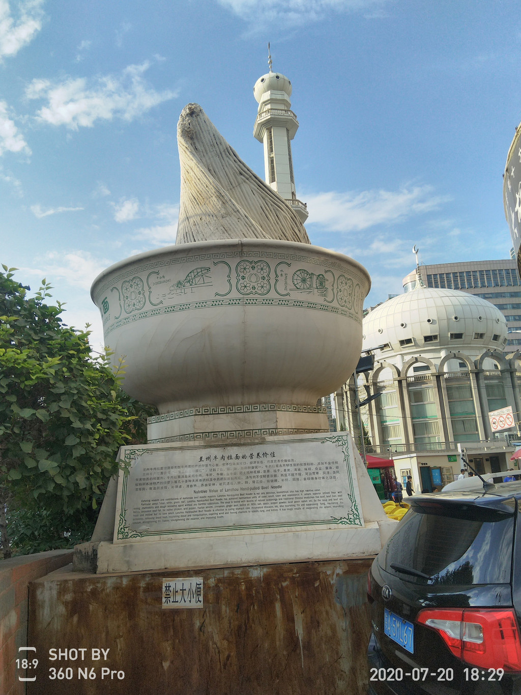早餐去吃了兰州的特色餐食-牦牛肉拉面,在一个比较正规有名的餐馆吃的。拉面一端出来就让人垂涎欲滴,色香味俱全,风扫残云般2-3分钟解决战斗。牦牛肉倒不多,只有4-5小块,但也可理解,毕竟才8元一碗,价格还是很实惠的。唯一的暇疵的是大汤碗有点豁口,我观察了一下,好多碗都有这个情况,大概是周转次数太多的缘故吧。