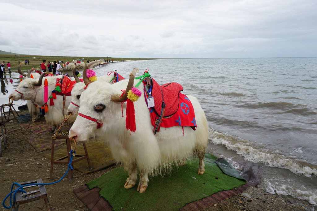 湖边到处是藏民牵着牦牛让游客拍照,下水20元,不下水10元。