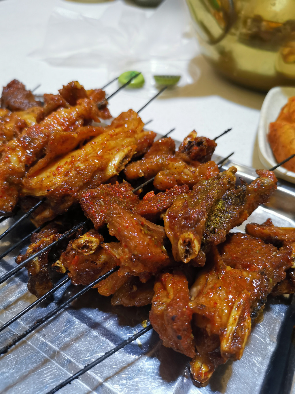 晚上吃顿当地的烧烤,烤羊排(90元/斤)无敌好吃,一点不膻