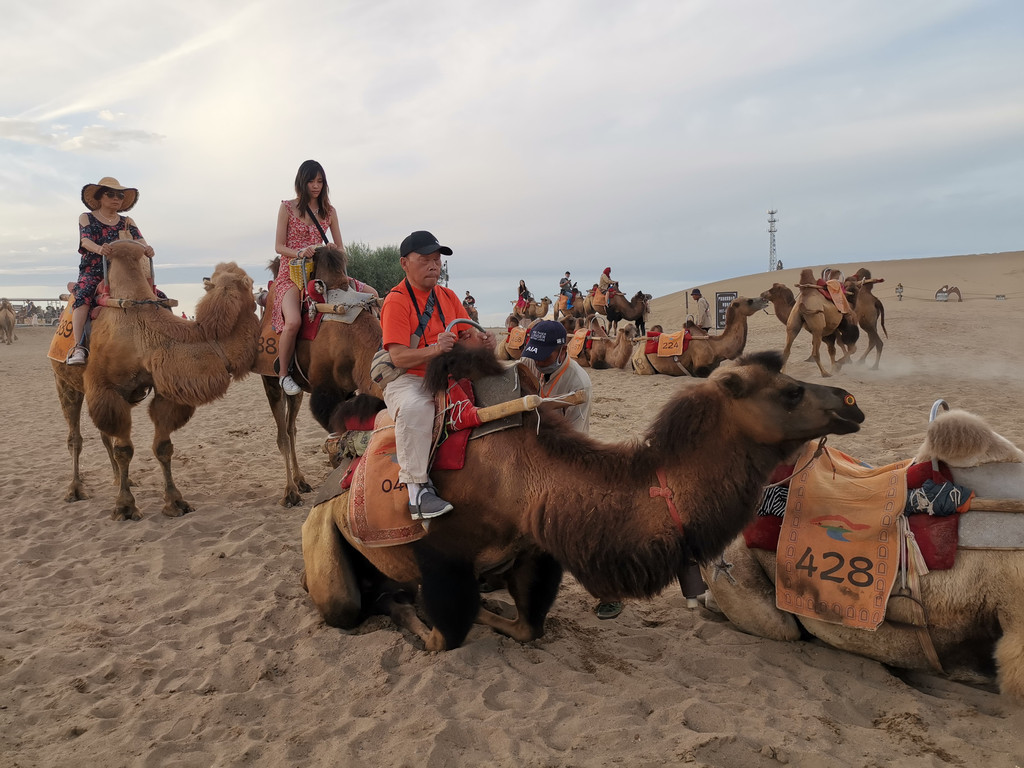 景区内骑骆驼、滑沙、滑草、沙漠摩托车、射箭、直升飞机游览等,我对滑翔机心动不已(480元),但是没人陪我玩,只好骑骆驼了(100元40分钟左右)