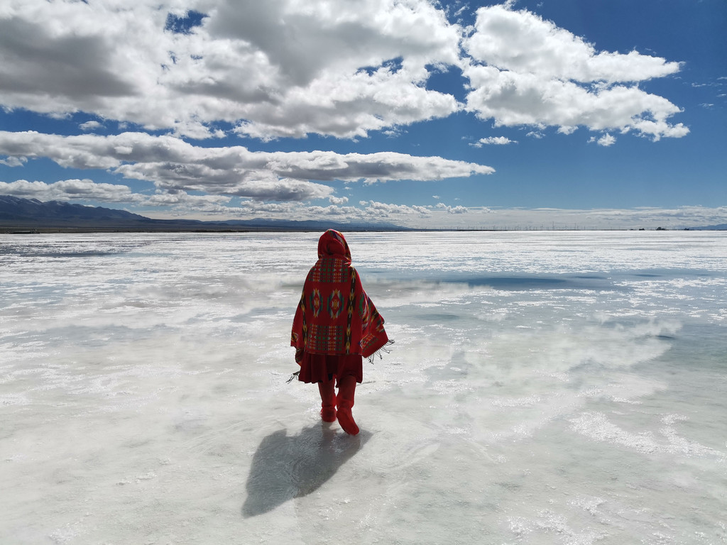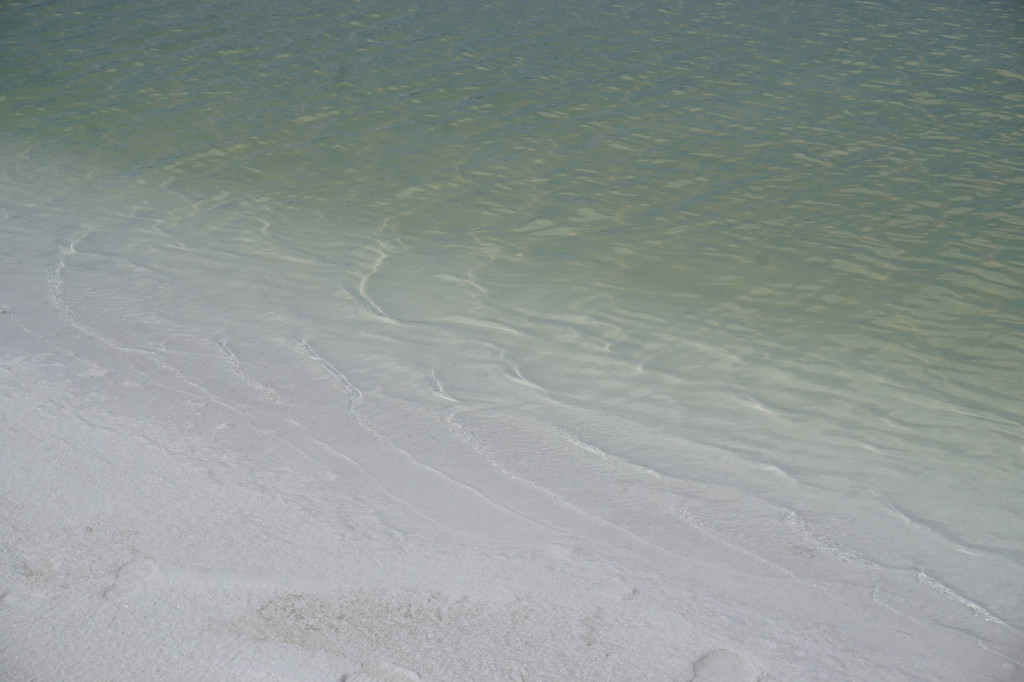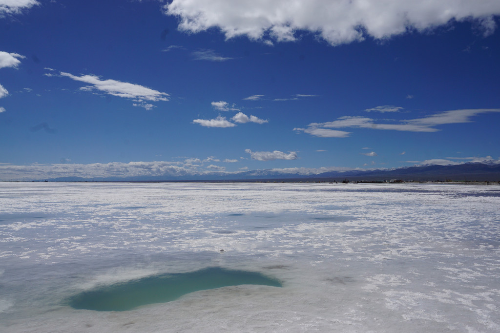 我们走走停停,终于找到一块人少的区域,租了鞋套(10元),下水拍照,不过一定要注意安全,盐湖里到处都是盐洞,光照太强,根本看不清照的怎么样,全凭感觉~