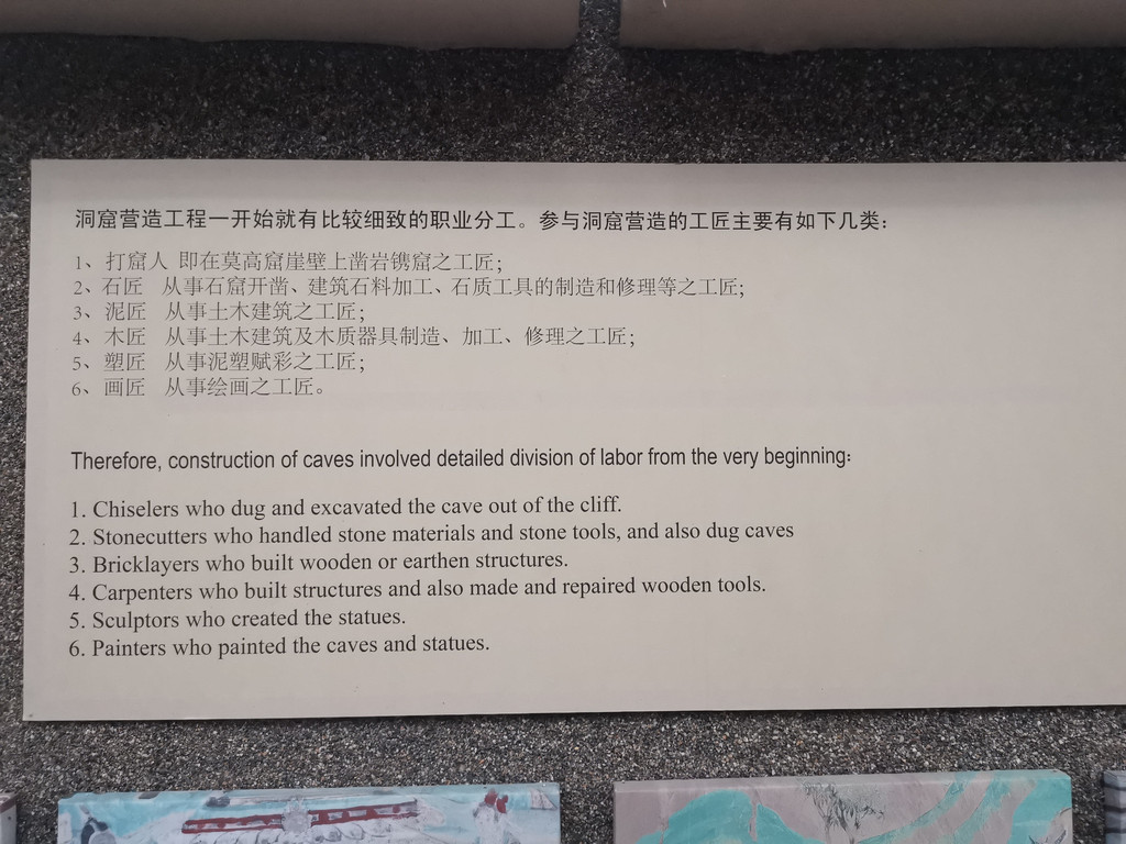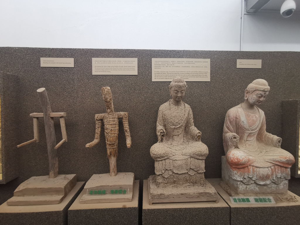 参观完石窟,讲解员会把游客带到一个卖书籍的陈列馆,里面好多市面已经绝版的莫高窟书籍,我买了一本。修复陈列馆内修复了8个不开放的石窟,还有佛像制作过程什么的,挺长见识