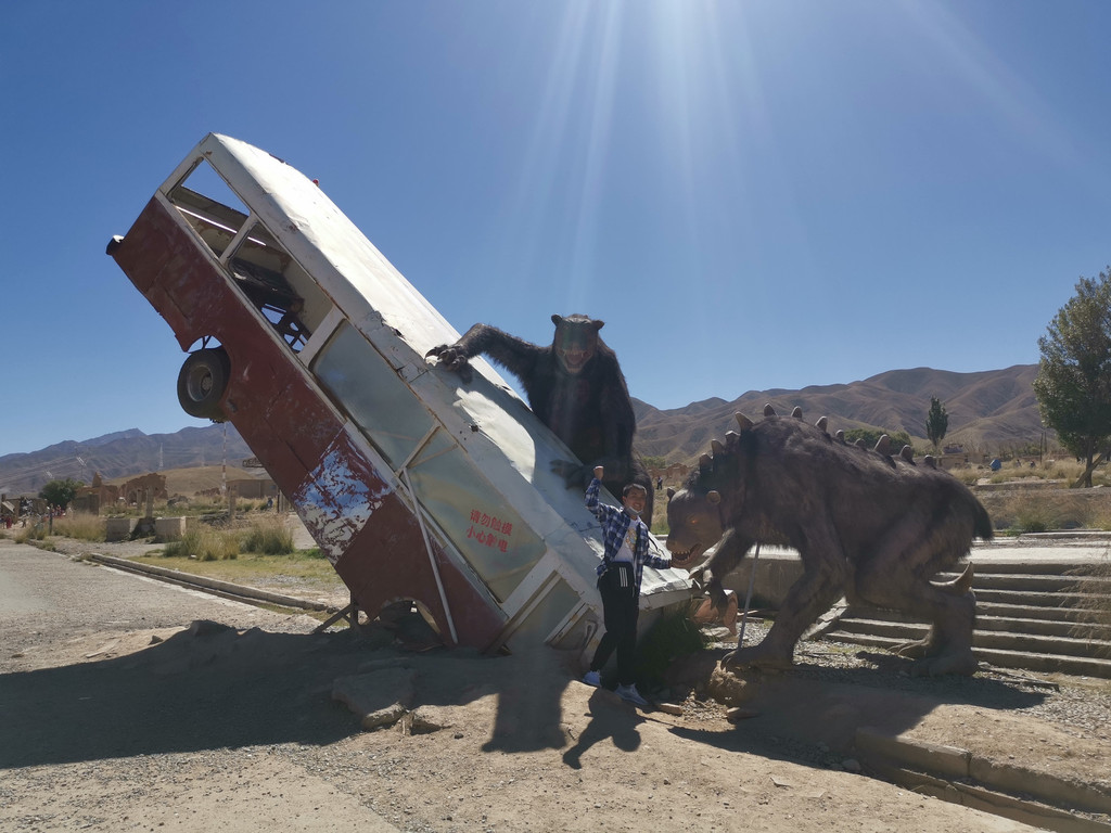 去敦煌的路上,行程里是安排了阳关景区的,但我查了一下,阳关就剩个风燧堡是当年的遗址,其他都是后建的,我们都不太感兴趣所以取消了这个行程,直奔敦煌市。
