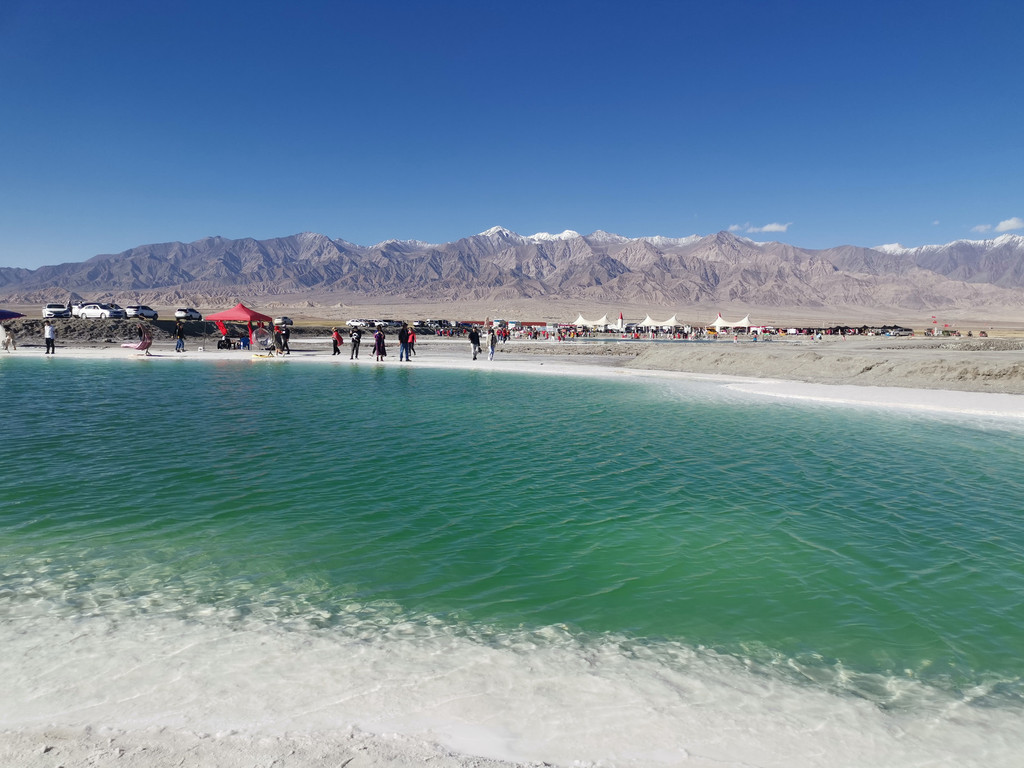 东台吉乃尔湖位于在格尔木市,柴达木盆地内,是一个以卤水为主的特大型锂矿床,因此也造就了东台吉乃湖蓝的令人心醉的景色。现在也是免费景点,网红马尔代夫,车子进去需要10元停车费。