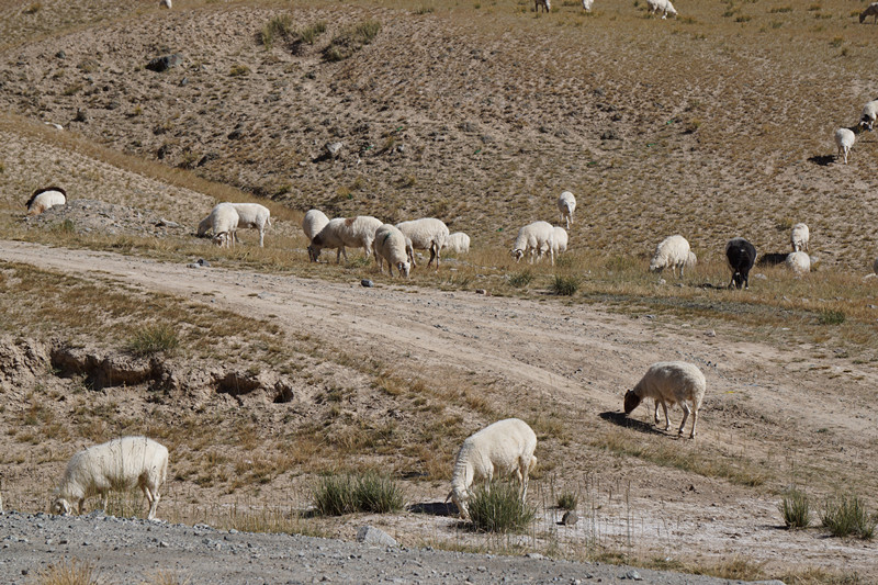 翻越拉脊山垭口,路上到处可见牛羊成群和收费的厕所(青海省统一价1元)
