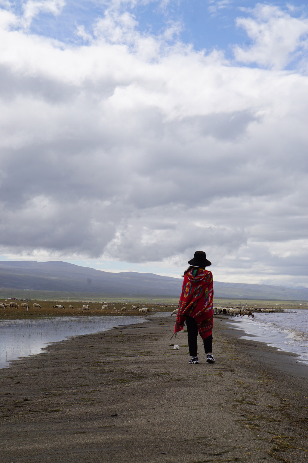 湖边感觉更冷了,由于阴天的关系,近看湖水不蓝了,传说中的青海湖让我有点失望