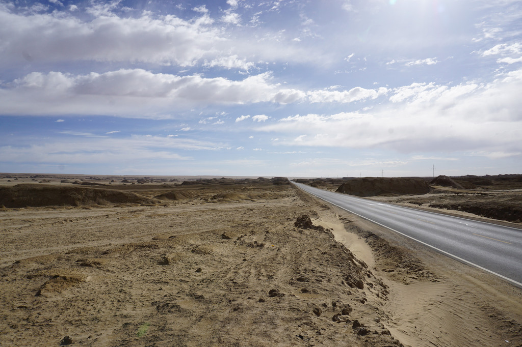 睡了一夜,高反症状消失了,又可以活蹦乱跳了~大柴旦明显比之前的城镇都干燥,早上起来嘴都起皮了。8点准时出发,去东台吉乃尔湖的路上,都是雅丹地貌,远远一片,很是庄观~