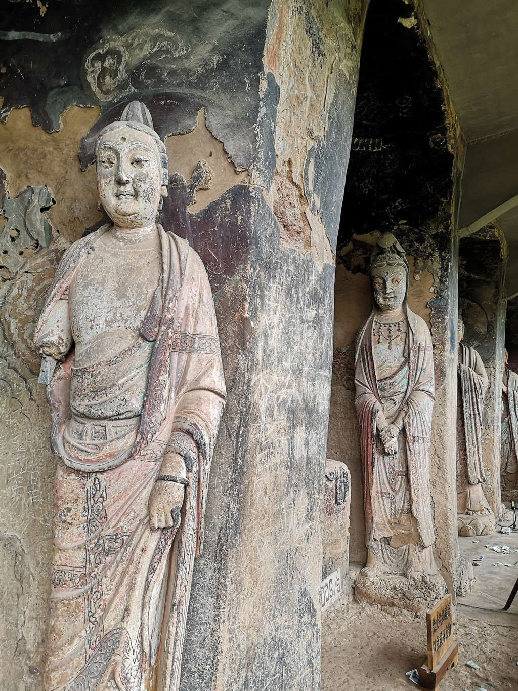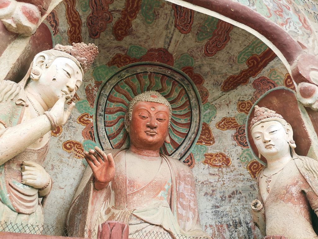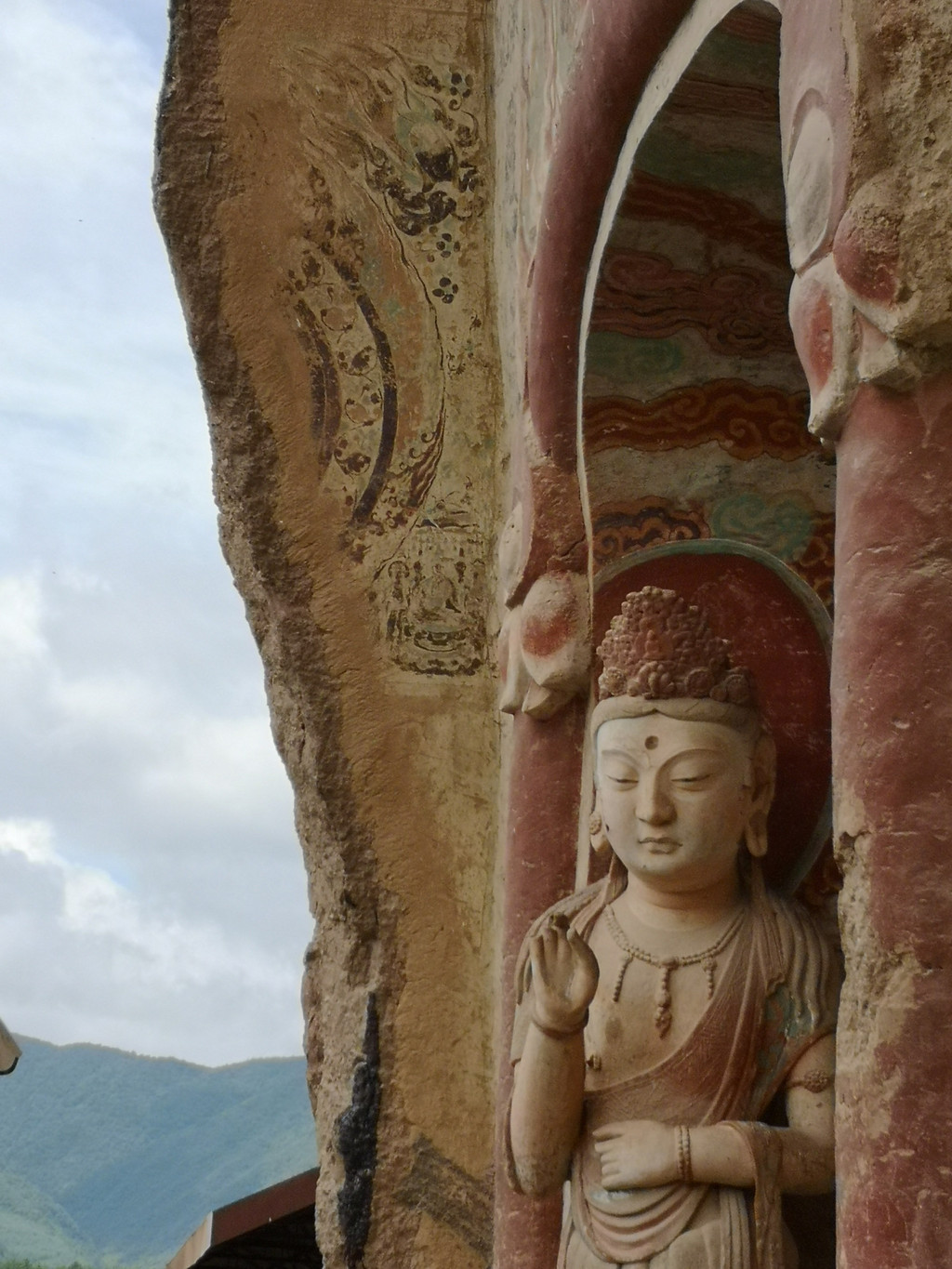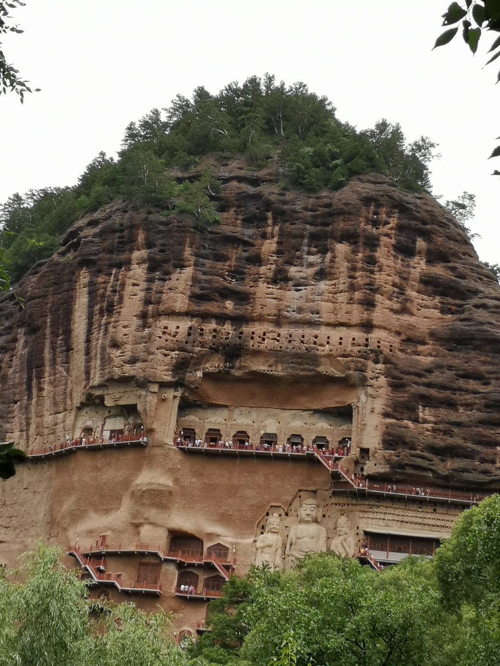 朝圣完,我们就驱车往天水麦积区,路过陇南,花了6小时到达了天水,19:30入住离麦积山不远的酒店。7月12日8:30来到天水麦积山石窟游览,她是中国四大石窟之一,位于甘肃天水市麦积区,是小陇山中的一座孤峰,高142米,因山形酷似麦垛而得名。麦积山石窟始建于公元384~417年,塑像以泥塑见长,最大变化之一:表现出了汉化与世俗化,塑雕技艺精美,赏心悦目。