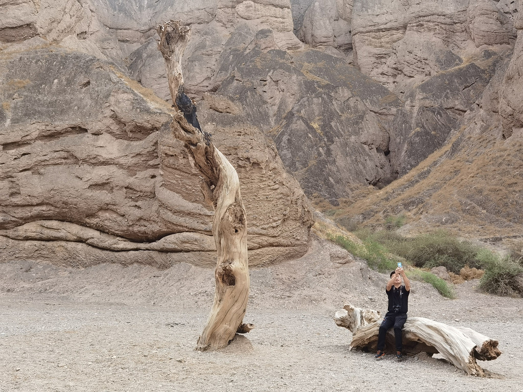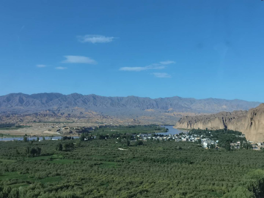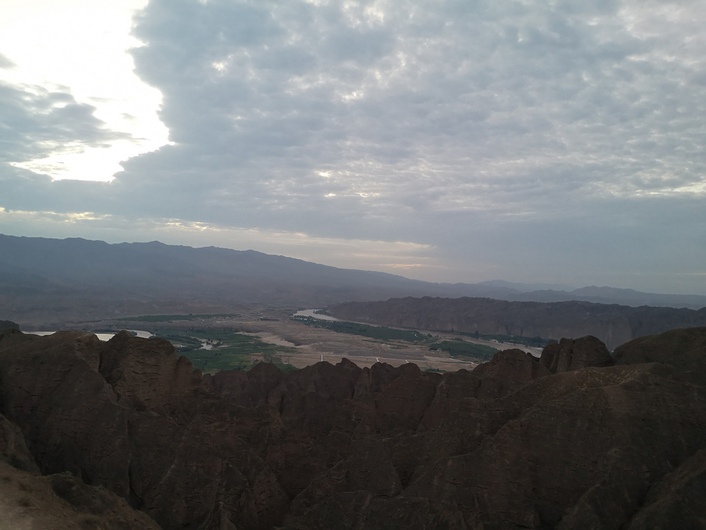 从白银驾车约2个小时,18:00左右到了景泰黄河石林国家地质公园。我们就在景区内龙湾村四川人家民宿住下了,老板娘是四川人,嫁到这里的。老板娘人很热情,我们就叫她炒了几盘家常菜,吃了饭喝了小酒后,我们就到村里的黄河边走走。因为黄河汛期,渡口的船摆渡也停了。一片黄土荒漠包围中,在黄河转弯处有一小块绿洲,仿如世外桃源,刹那间生机盎然的生命气息迎面扑来了。
