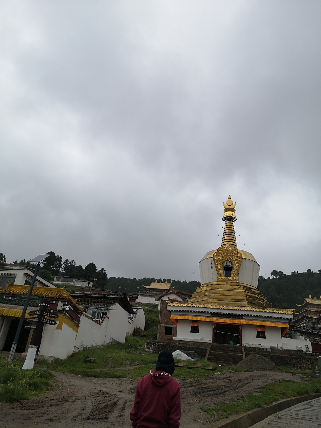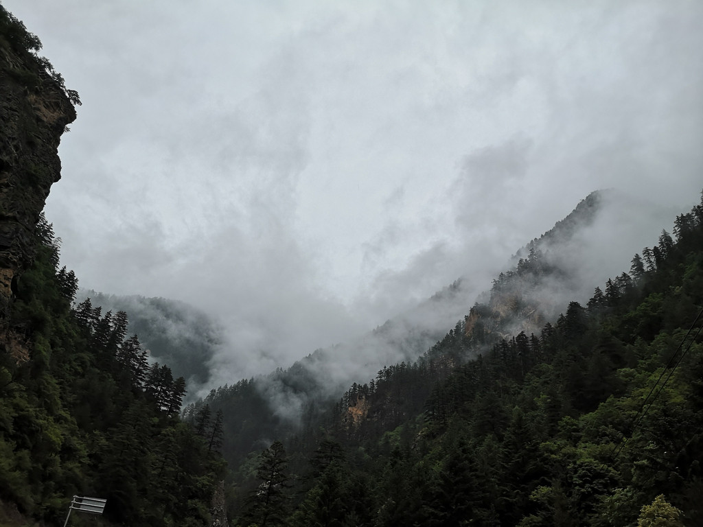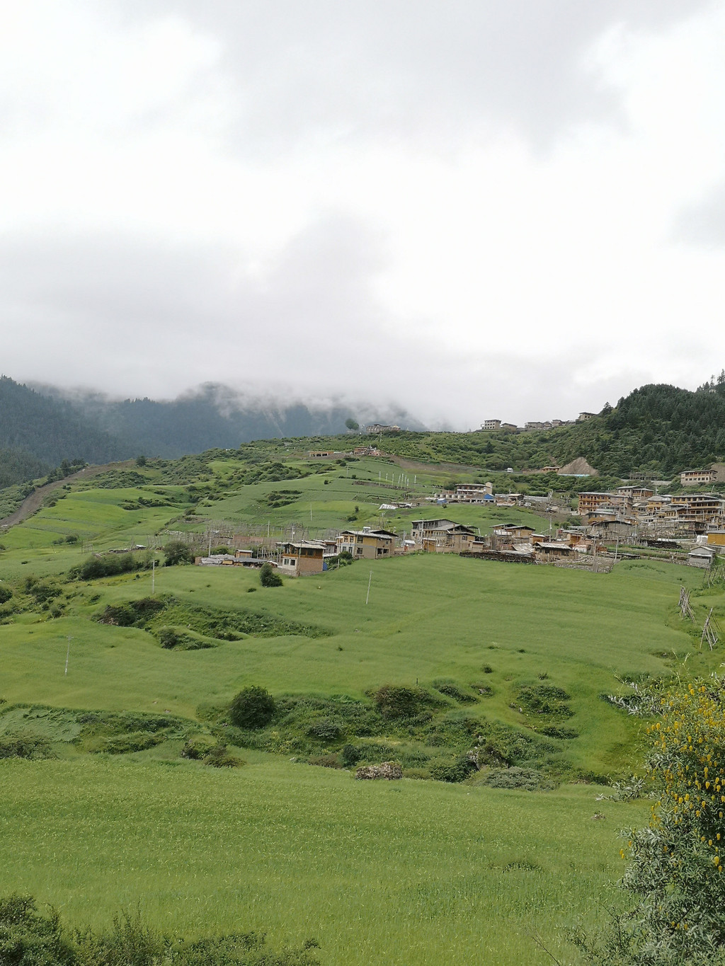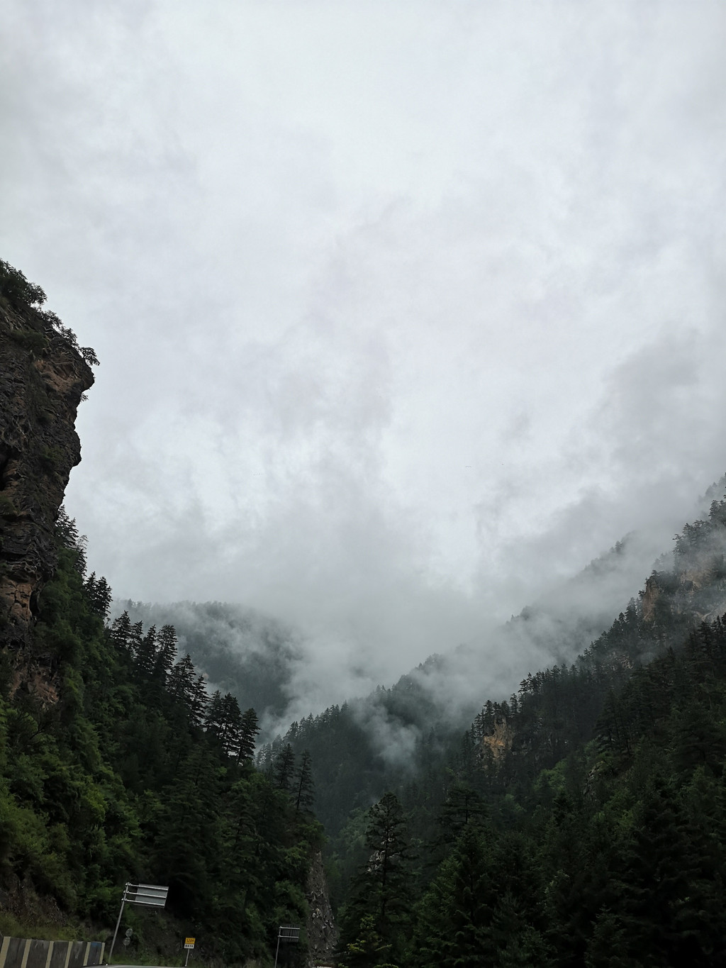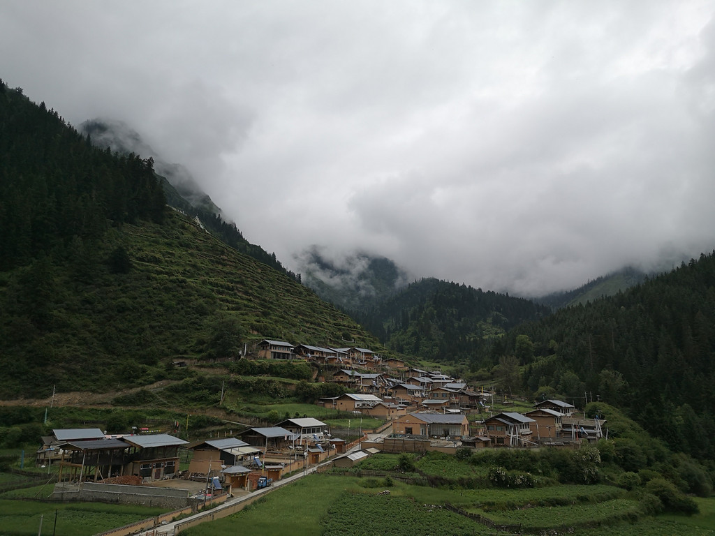 14:00左右由郎木寺出发,去扎尕那藏族古村落。途经若尔盖草原路段时,因国道修路,车辆拥堵,我们也跟别的车走牧区小道,结果刚绕过堵点要并入国道时,有牧民出来拦住了车辆, 经过沟通:牧民说车辆压了草场, 要交100元过路费,虽然有以前车辙,为了卖平安省时间,我们也不啰嗦了就给了钱,总算过了堵点。经过若尔盖峡谷时,沿着白龙江前行,两侧是高耸入云的山坡,墨绿的松柏,潺潺的江水,缭绕的云雾构成了一幅幅精美的山水画,宛如人间仙境。路上还遇到1个僧侣挥手搭顺风车,目观其面相尚可,所以就捎上了,车上与其聊了些藏区佛教,那僧侣还去印度进修了三年经学。