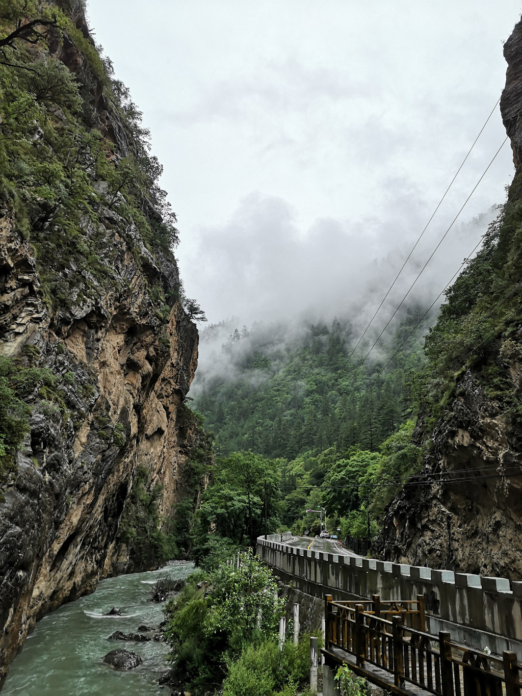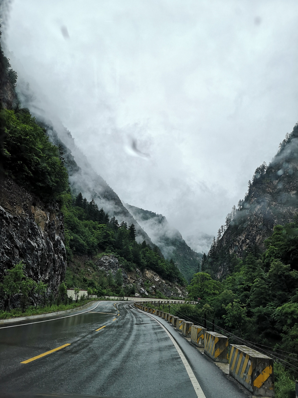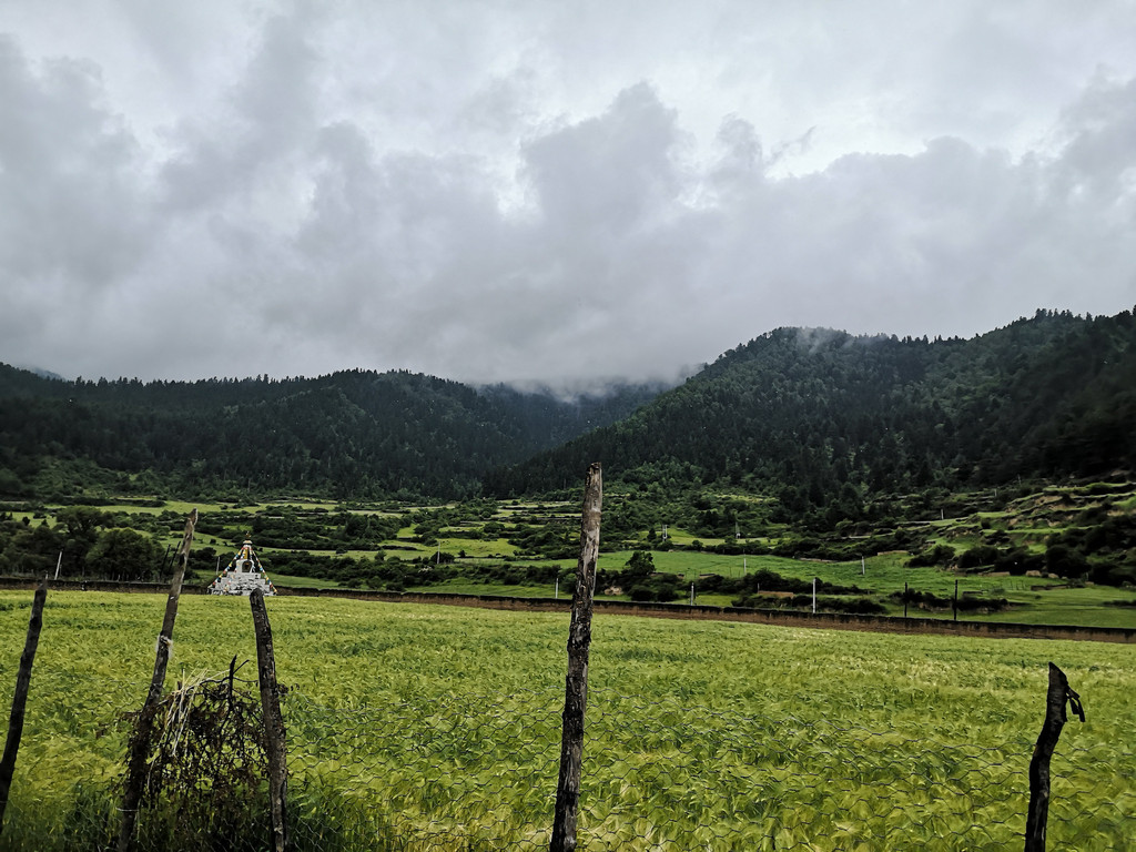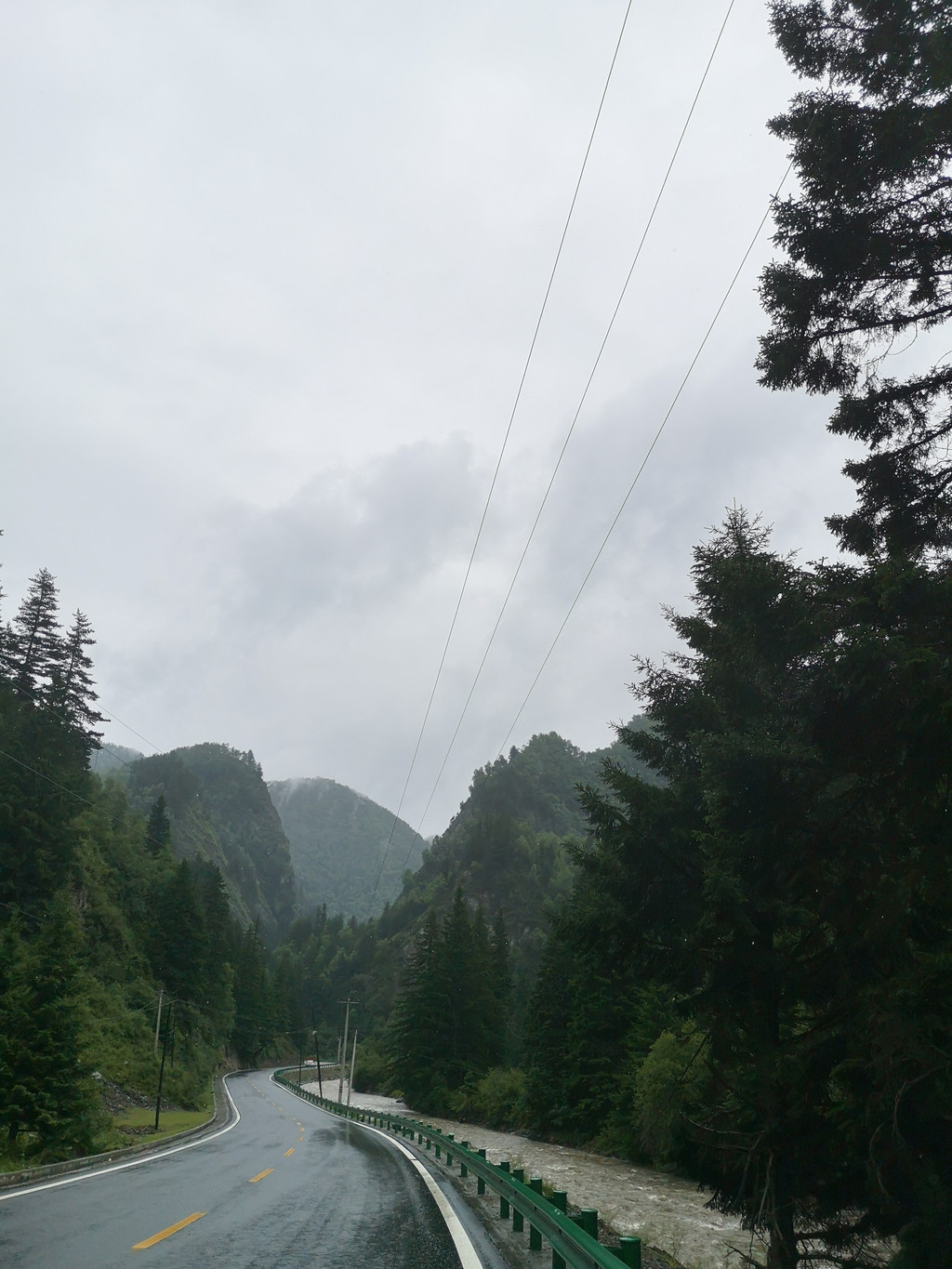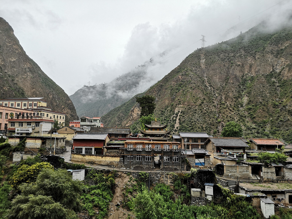 14:00左右由郎木寺出发,去扎尕那藏族古村落。途经若尔盖草原路段时,因国道修路,车辆拥堵,我们也跟别的车走牧区小道,结果刚绕过堵点要并入国道时,有牧民出来拦住了车辆, 经过沟通:牧民说车辆压了草场, 要交100元过路费,虽然有以前车辙,为了卖平安省时间,我们也不啰嗦了就给了钱,总算过了堵点。经过若尔盖峡谷时,沿着白龙江前行,两侧是高耸入云的山坡,墨绿的松柏,潺潺的江水,缭绕的云雾构成了一幅幅精美的山水画,宛如人间仙境。路上还遇到1个僧侣挥手搭顺风车,目观其面相尚可,所以就捎上了,车上与其聊了些藏区佛教,那僧侣还去印度进修了三年经学。