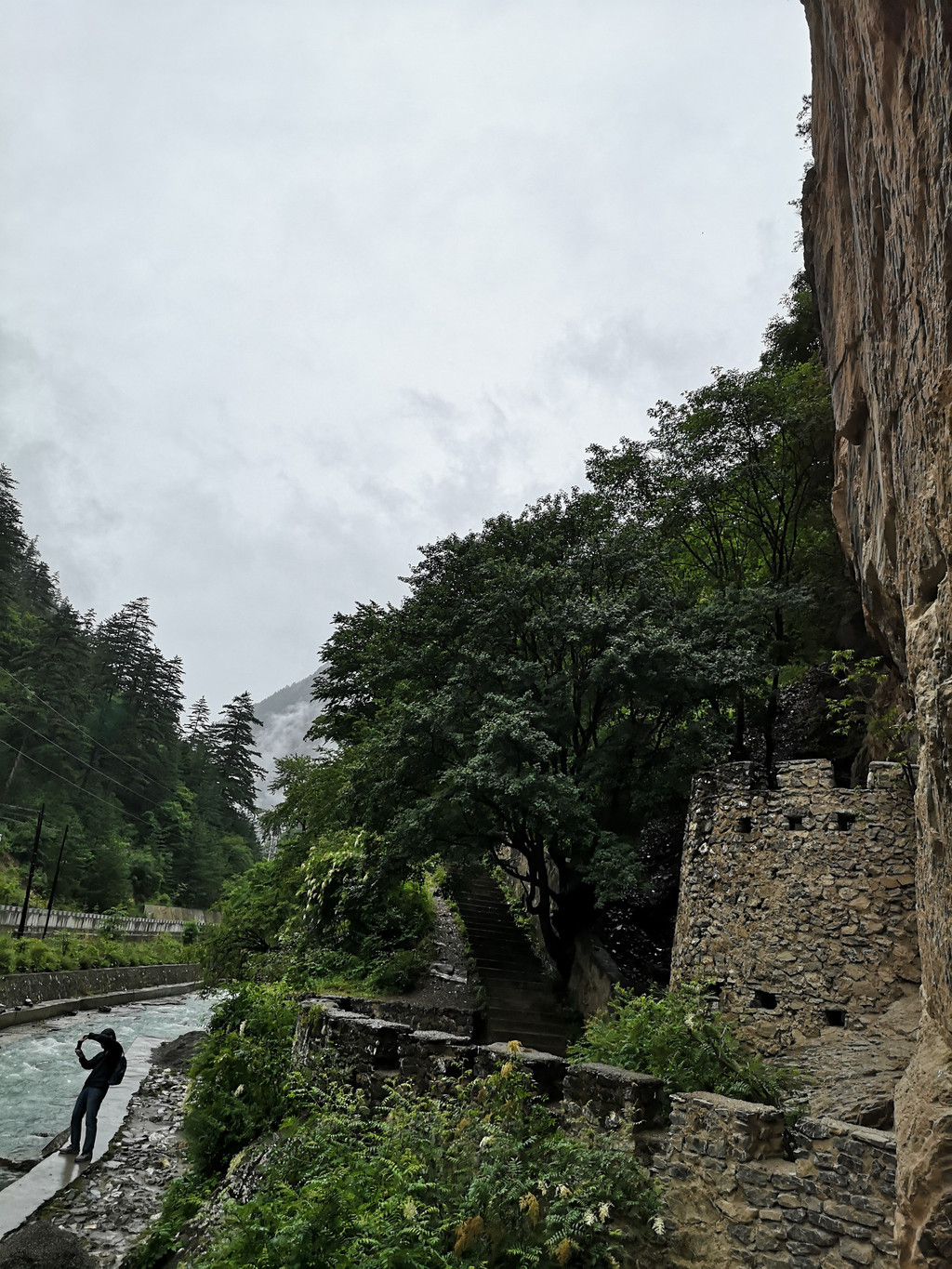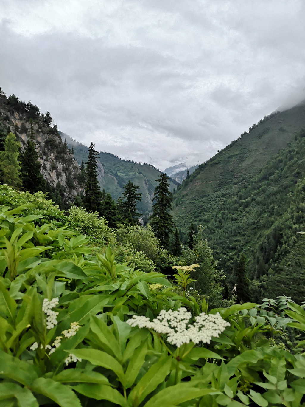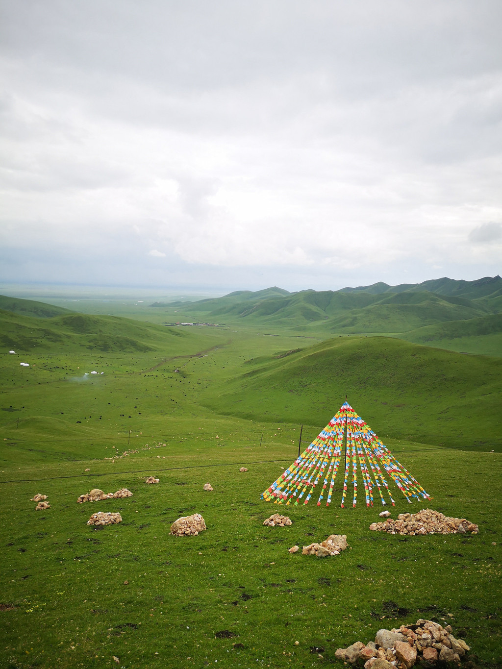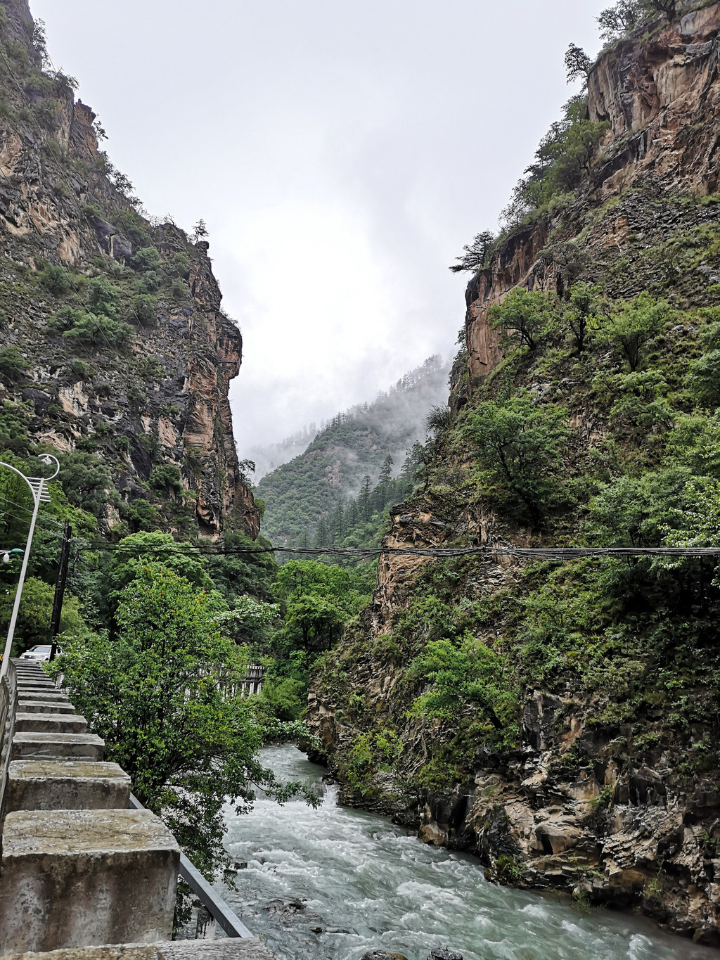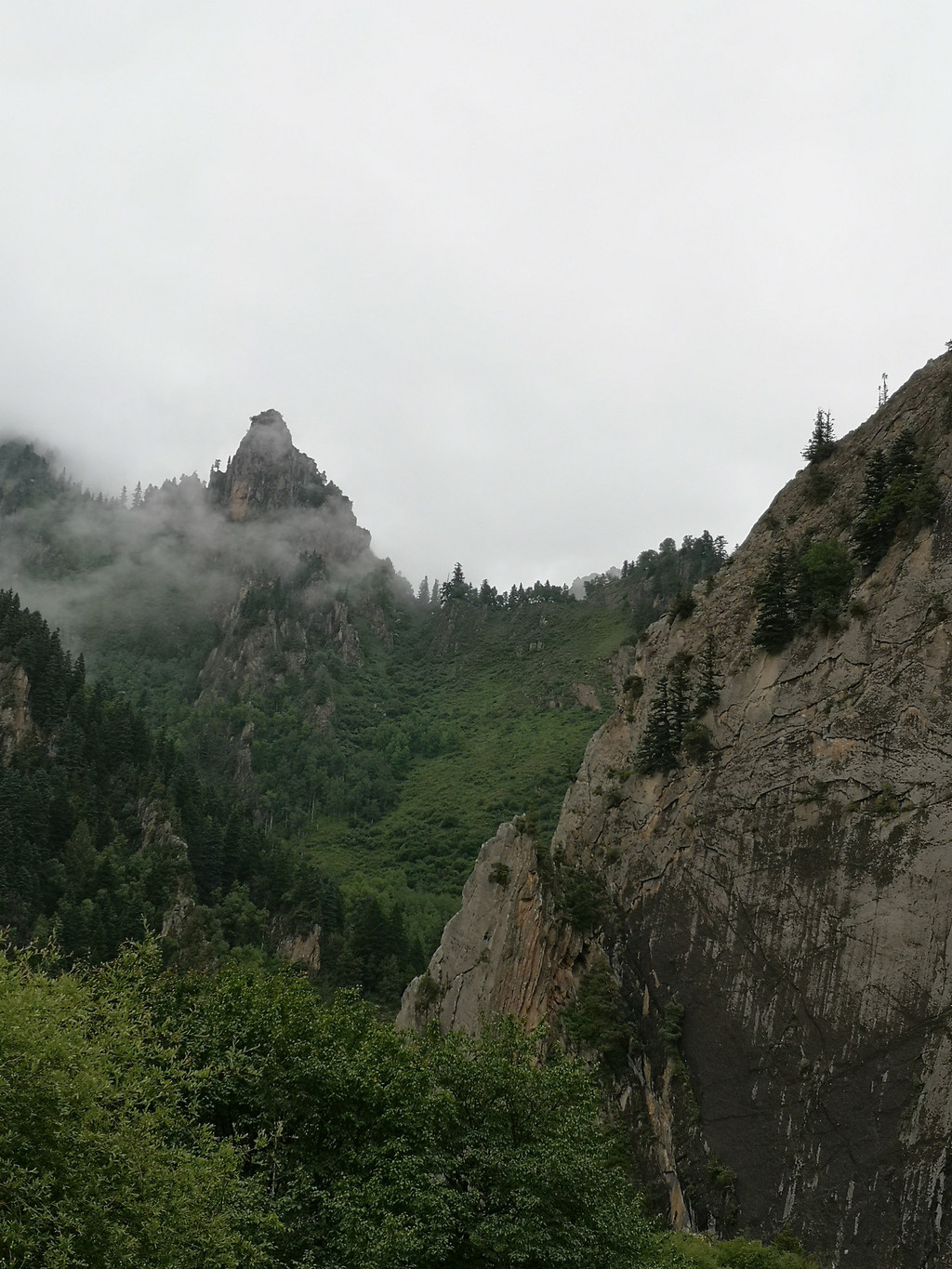 14:00左右由郎木寺出发,去扎尕那藏族古村落。途经若尔盖草原路段时,因国道修路,车辆拥堵,我们也跟别的车走牧区小道,结果刚绕过堵点要并入国道时,有牧民出来拦住了车辆, 经过沟通:牧民说车辆压了草场, 要交100元过路费,虽然有以前车辙,为了卖平安省时间,我们也不啰嗦了就给了钱,总算过了堵点。经过若尔盖峡谷时,沿着白龙江前行,两侧是高耸入云的山坡,墨绿的松柏,潺潺的江水,缭绕的云雾构成了一幅幅精美的山水画,宛如人间仙境。路上还遇到1个僧侣挥手搭顺风车,目观其面相尚可,所以就捎上了,车上与其聊了些藏区佛教,那僧侣还去印度进修了三年经学。