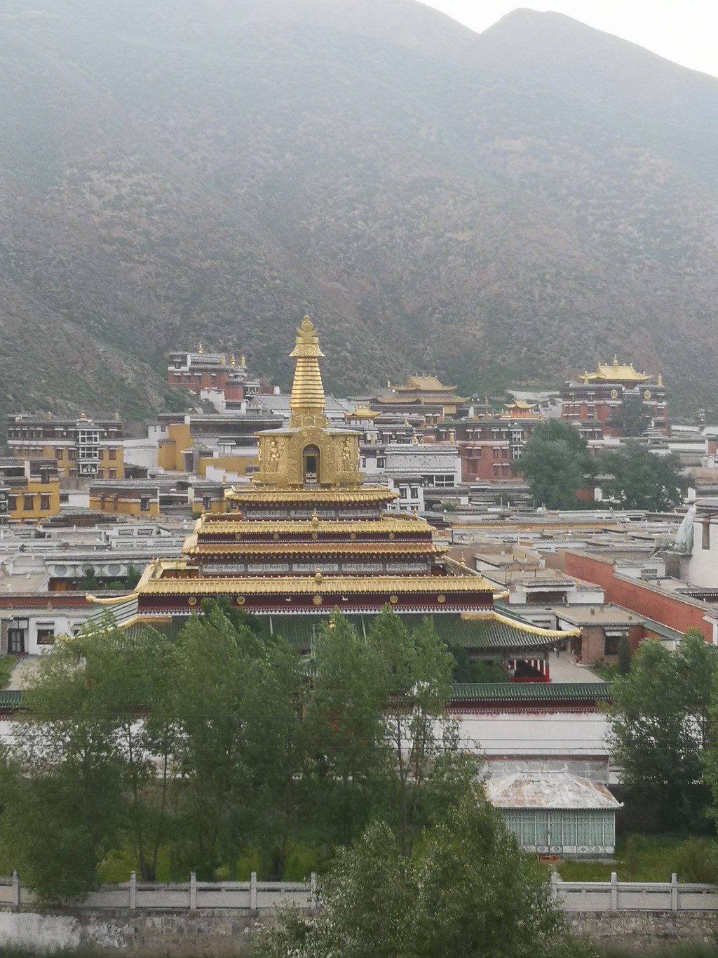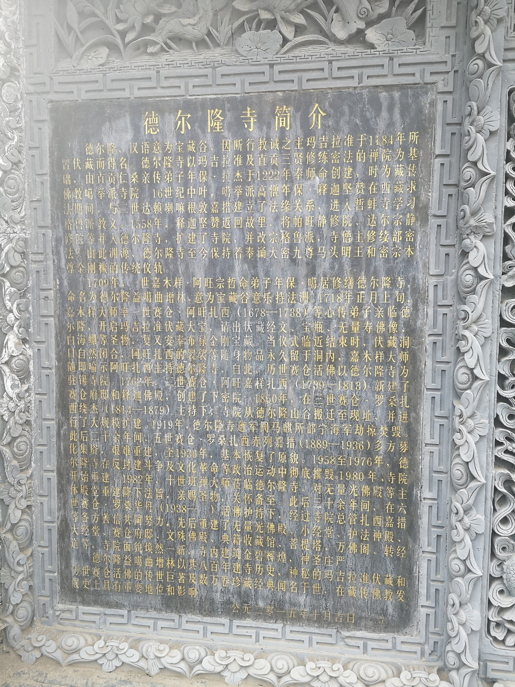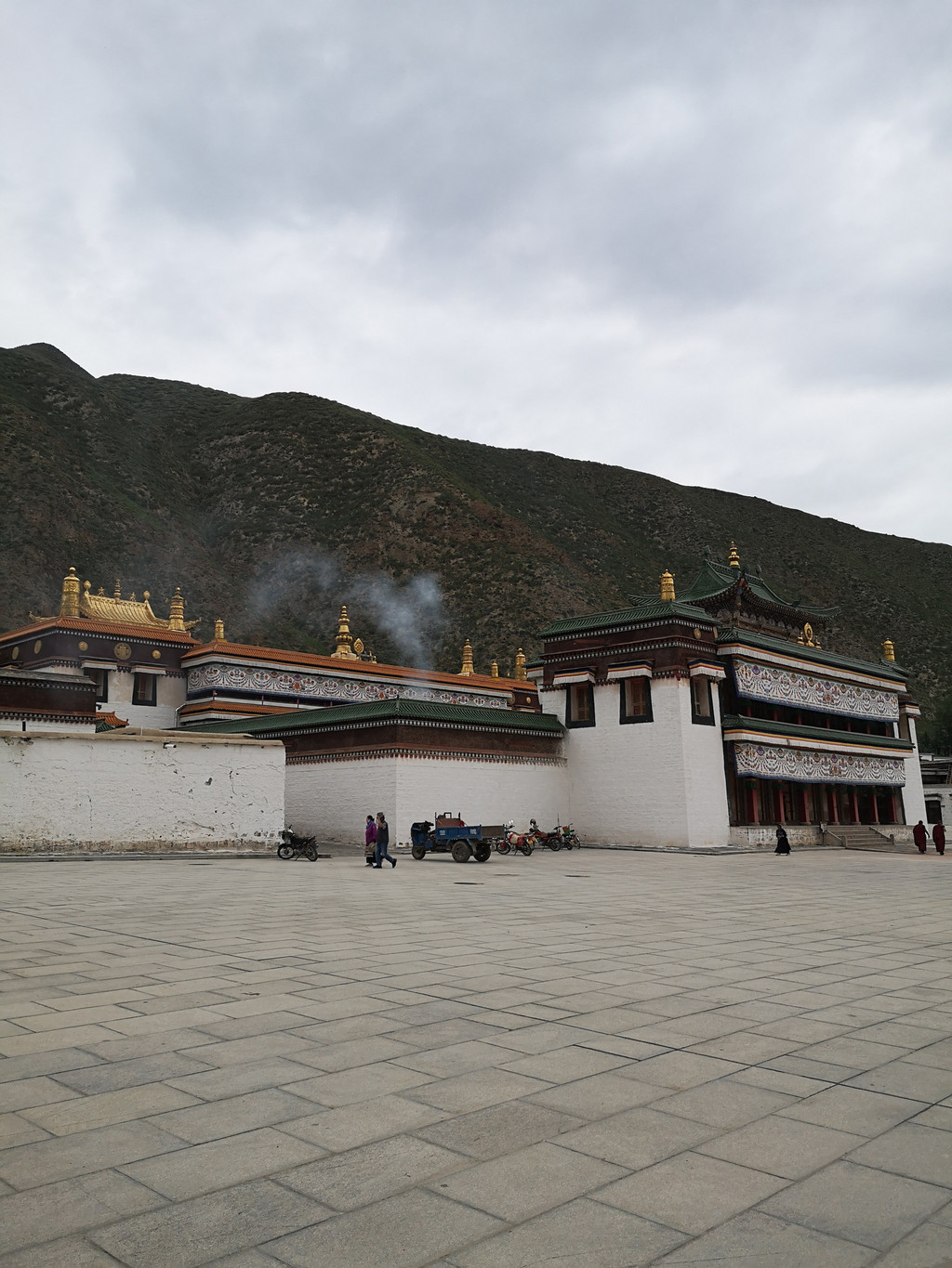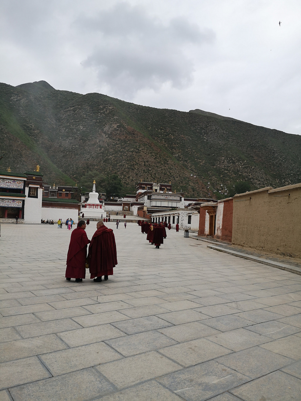德尔隆寺,是藏族历史上著名的女密宗师,藏传佛教能断派创始人玛玫拉仲埋“伏藏”之地。该寺在文革中被拆除,1981年修复了大经堂,随后慢慢恢复到目前的规模。参观完德尔隆寺,又继续前行,约18:00我们到了拉卜楞寺,位于甘南藏族自治州夏河县城西0.5公里处。山谷中遍布具有藏族特色的拉卜楞寺建筑群,是藏传佛教格鲁派六大寺院之一,被誉为“世界藏学府”,保留有全国最好的以闻思、医药、时轮、吉金刚、上续部及下续部六大学院为主藏传佛教教学体系。占地86.6万平方米,建筑面积40余万平方米, 所属寺庙有139处,教权范围达甘、青、川、蒙、东北及新疆等地域,是甘南地区的政教中心。