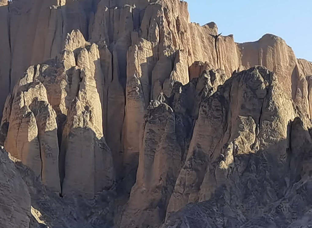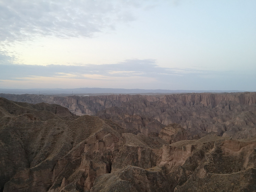 与老板娘约好了小面的包车,次日7月8日早上5点多进黄河石林核心景区。司机如约而至,拉我们进景区,这时景区工作人员还没有上班,不用买门票。据介绍,黄河古石林群形成于210万年前的积砂砾岩层,由于新构造运动、雨洪侵蚀及重力 崩塌,形成许多80~200米的峭壁、岩柱组成的峰林和峰丛。十里长峡,如同画廊。奇峰绝壁,崖壑裂隙,千姿百态,神妙无穷。浸透着雄、奇、险、古、野、幽的原始风韵,展现了粗犷、雄浑、朴拙、厚重的西部特色。
