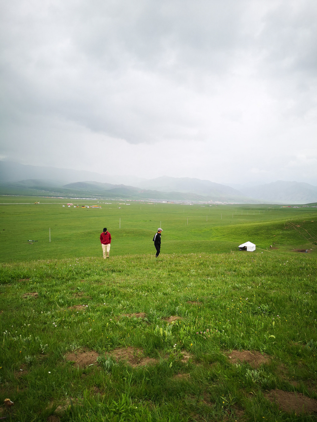 当晚入住夏河拉卜楞民航大酒店,海拔3200米,吴教授有点高反,开始吸氧了。7月9日10:00左右我们往黄河第一湾玛曲进发。途中经过桑科草原,在路边用了午餐后,我们就到一家牧民草场里逛了逛。吴教授还与牧民儿子聊起了当地的教育现状,走一路了解一路呢。