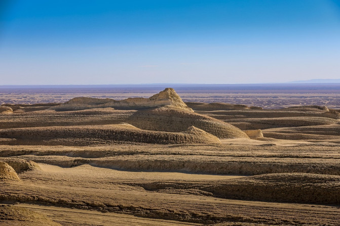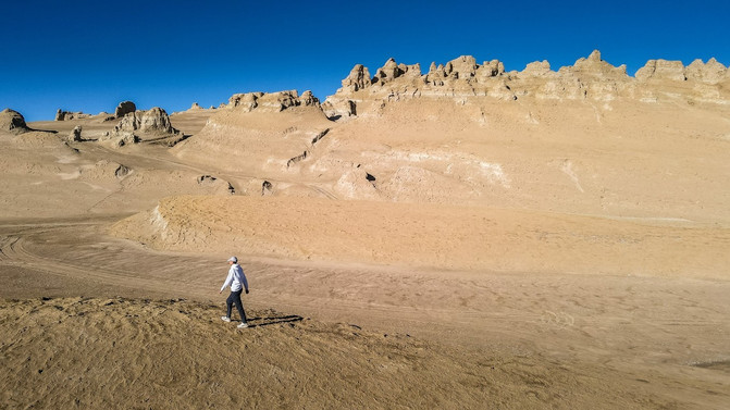 雅丹地质公园内的土林是可以爬上去的,可以看到土堆上面没有长出任何的植物,完全就是最原始的自然风貌。