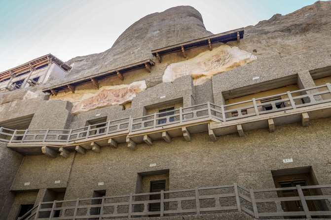 莫高窟所处的鸣沙山,这里全年干燥少雨、这就为石刻、壁画、彩塑等文物的保存提供了很好的外部环境。
