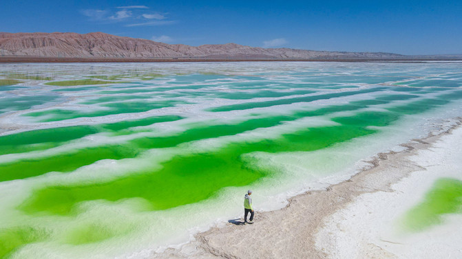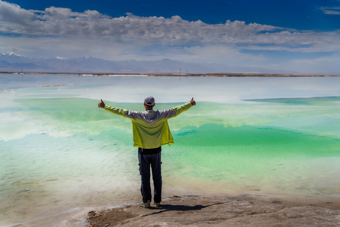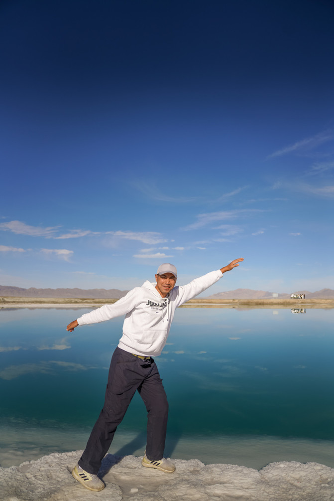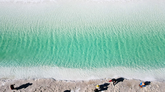 东台吉乃尔湖最特别之处是,它的湖水颜色是蒂芙尼蓝,清澈;看上来和热门海岛目的地马尔代夫的海水颜水一样。