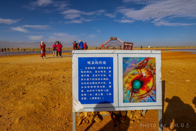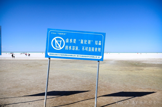 矿区的安全告示,提醒游客,湖水虽然很清澈透明,但不可以下水游完,因为这些水都是“氯化镁”结晶的水溶液。