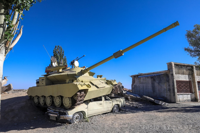 小镇内有商店,九层妖塔倒插公交车就大马路上。另外马路的废墟上还有飞机、坦克、吉普车,这些都是很好的创作背景。
