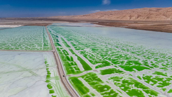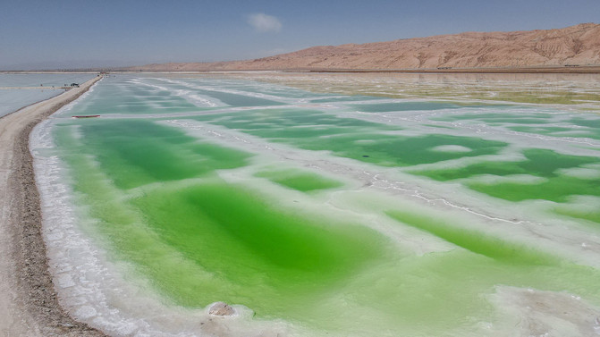 东台吉乃尔湖是一个免费的景点,其实它是大柴旦镇的一个化工矿产区。湖是硫酸镁盐湖,同时湖水含 有大量的锂、棚、钾、镁等资源,这是都是重要的工业原料之一。