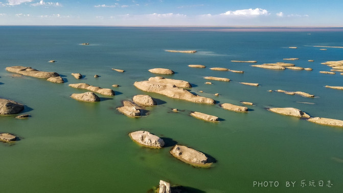 东台吉乃尔湖和西台吉乃尔湖,还有水上雅丹原先是连在一起的。后来因为湖水干涸,才渐渐分离开来。