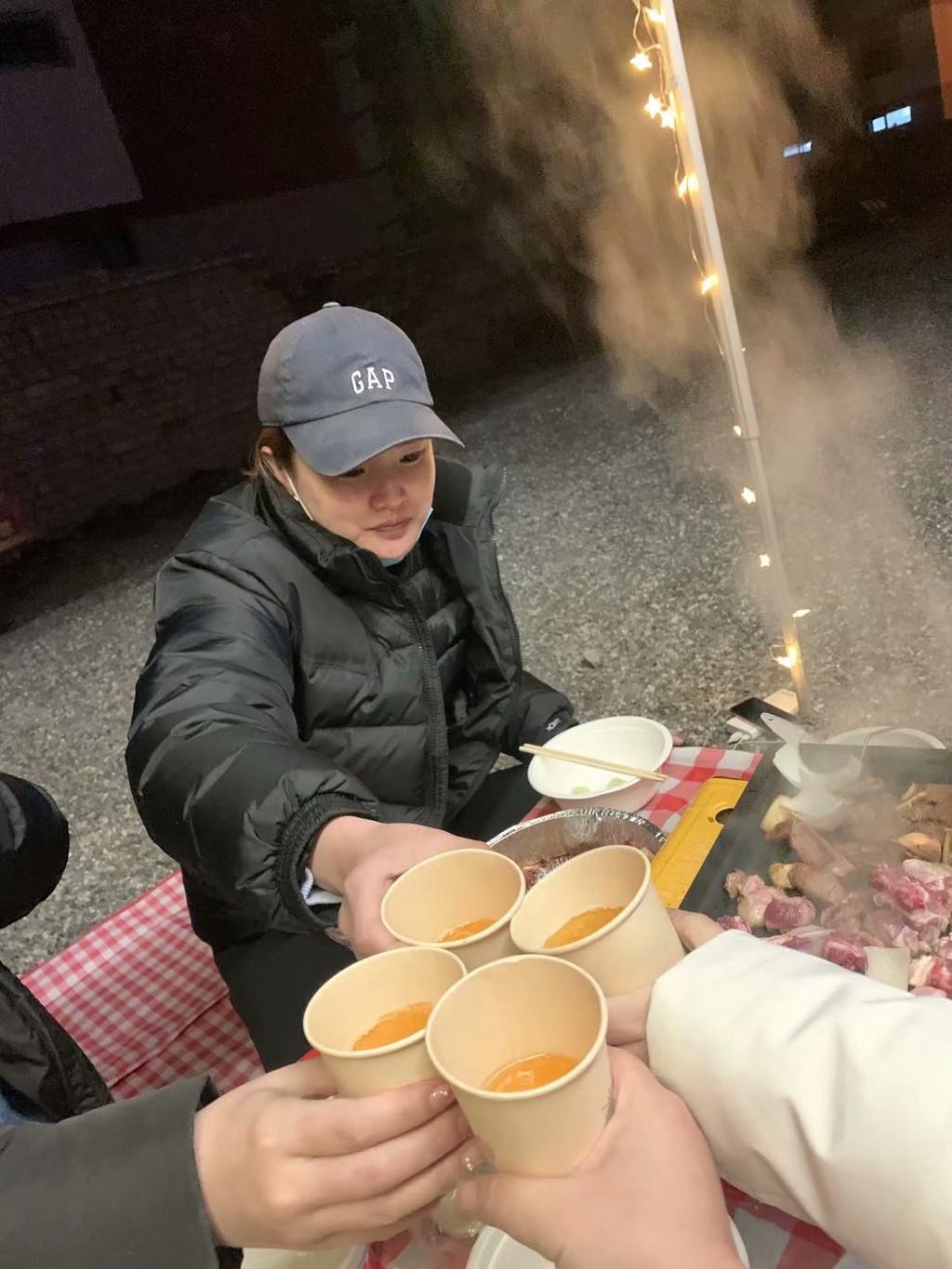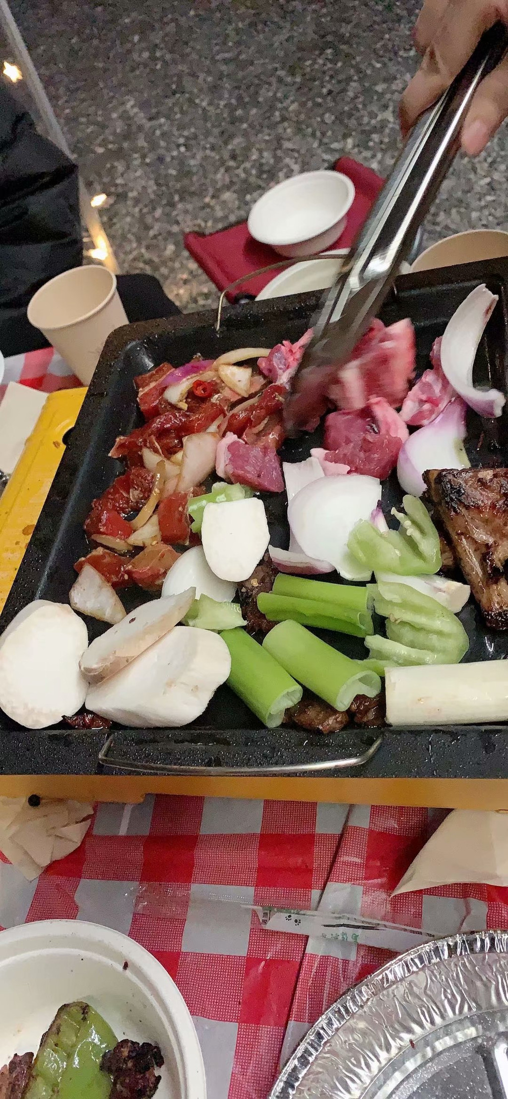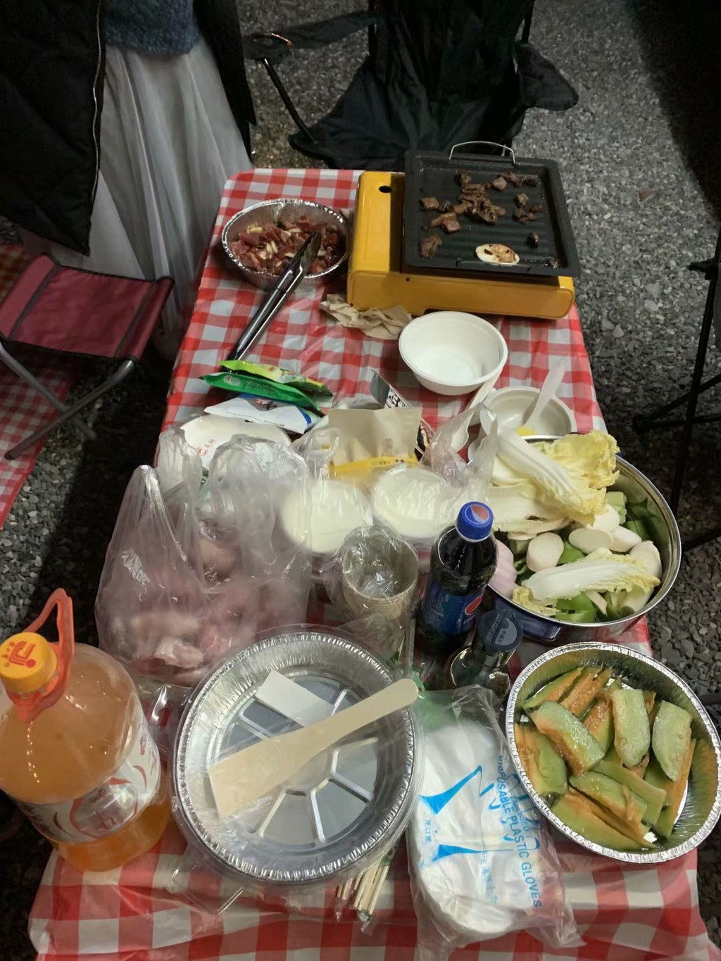 晚上赶到大柴旦镇,安顿好酒店住宿,给房车加水加电,顺便去附近烧烤店买了2kg羊肉(60元/kg),2kg牛肉(50元/kg),以及一些蔬菜。不得不说,一路上,我们遇上的西北当地人,菜鸟驿站,酒店前台,快递小哥,都很朴实善良,会主动帮助我们,商家也非常实在,2kg的肉,实实在在2kg,我们4个女孩子,分两顿都没吃完。4个人分配完任务,各自忙各自的事,但一顿忙活下来,也将近晚上11点了。遮阳棚支楞起来,装饰灯挂起来,桌椅展开来,烧烤盘点起来,就这样,我们在西北的晚上,近11点的深夜,酒店的停车场(跟酒店打过招呼)内,开始了我们的烧烤大餐。也许是氛围到位,也许是西北的牛羊肉本身特别美味,也许是酒不醉人人自醉,我们吃着喝着,听着油滋滋冒泡的响声,聊着笑着,这顿烧烤会变成特别的回忆刻在我们的脑海里。凌晨一点,收拾完装备,整理了垃圾,回酒店睡觉。