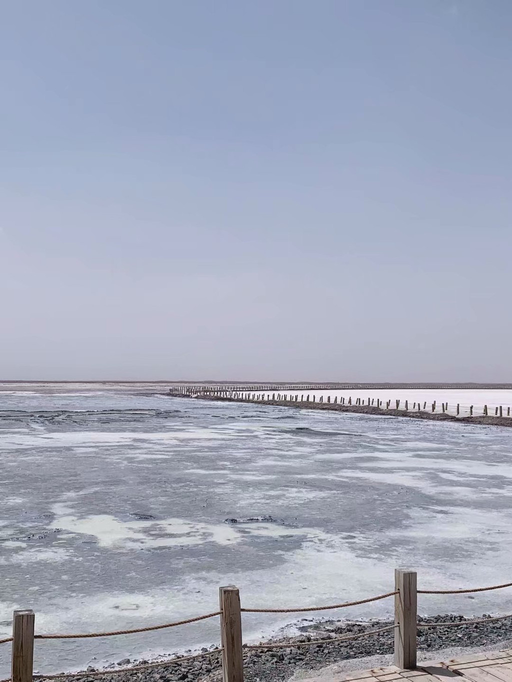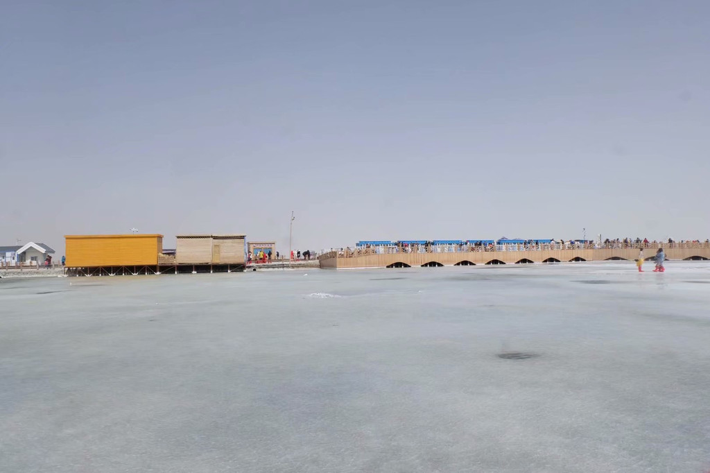 其实茶卡盐湖在一个盐厂里面,那个所谓的售票处更像厂子的传达室,旁边还有盐工礼堂。景色不敢恭维,白茫茫的一片,因为湖中没有任何参照物,显示不出倒影,所以和“天空之镜”相去甚远,更没有“中国版玻利维亚”的神韵。这里需要说明一点,在西北的任何一个景点,都需要天公作美。天气不同,呈现的景象完全天壤之别,因为天气原因,我所看到的茶卡盐湖,也许差强人意,但其他人看到的可能美轮美奂。也是因为天气原因,我看到的东台吉乃尔湖和翡翠湖就非常美,但在别人眼中也许就不过如此。不是谁的审美问题,只是天气好与坏的区别。我对茶卡盐湖的印象,可能只停留在海盐冰淇淋上。