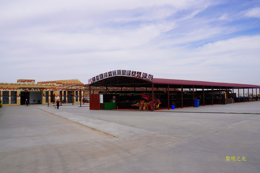 其实这个地方就是兰州水墨丹霞小吃城,规模不是很大,但也有十几个店铺,有小卖部、小吃店、开水房、卫生间等,感觉设施齐全。但没有人,估计尚未营业,经询问工作人员,没有热气球,正在修建一个热气球模型。我们没有停留,看了看后,就去下面的电瓶车乘车点乘车。