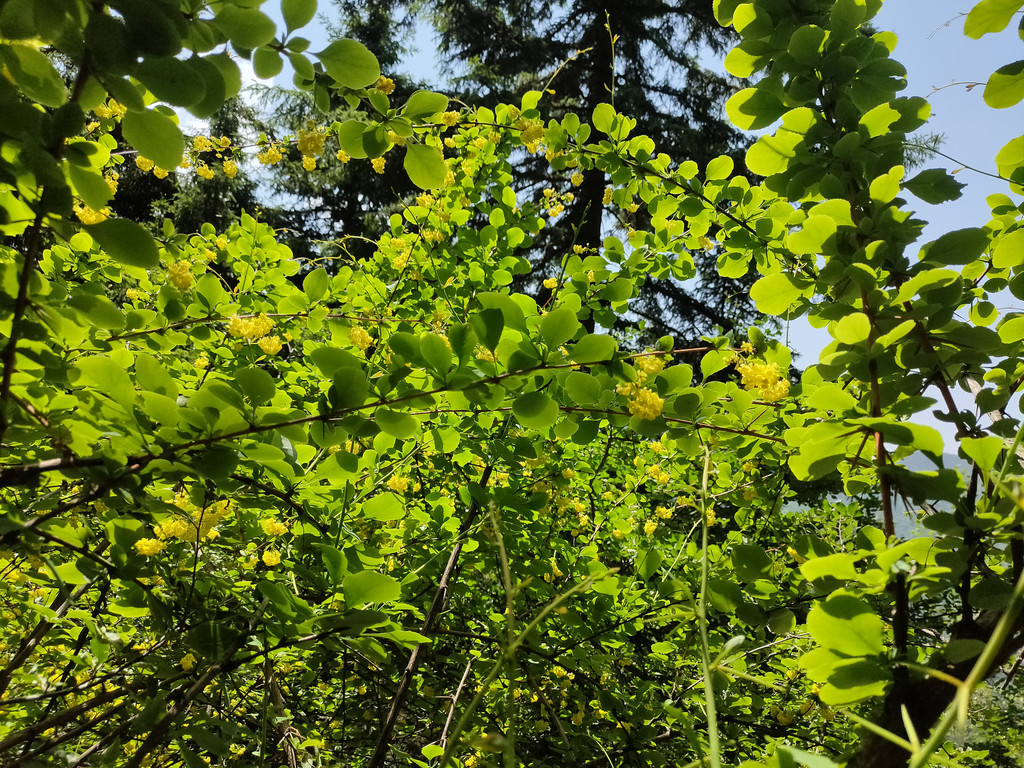 好吧,既然已登一大半,自然没有放弃的道理。栈道两侧山花已经开到荼蘼,却是在山下没有见到过的,一丛丛一树树的,黄白相间,偶有粉色,倒也不觉得辛苦了。