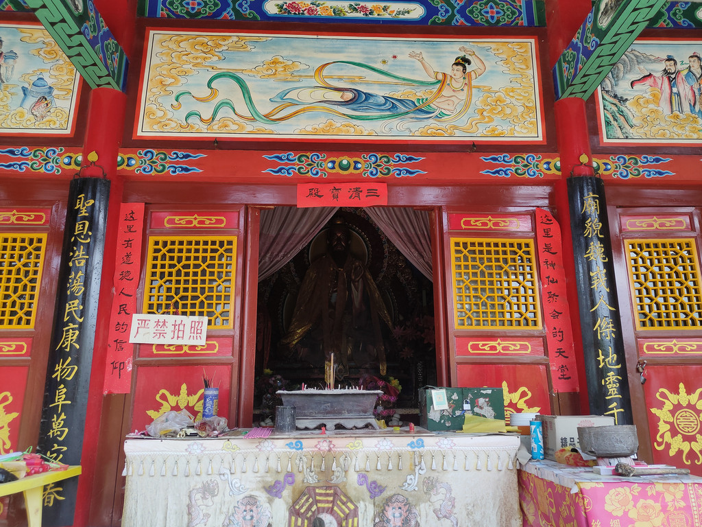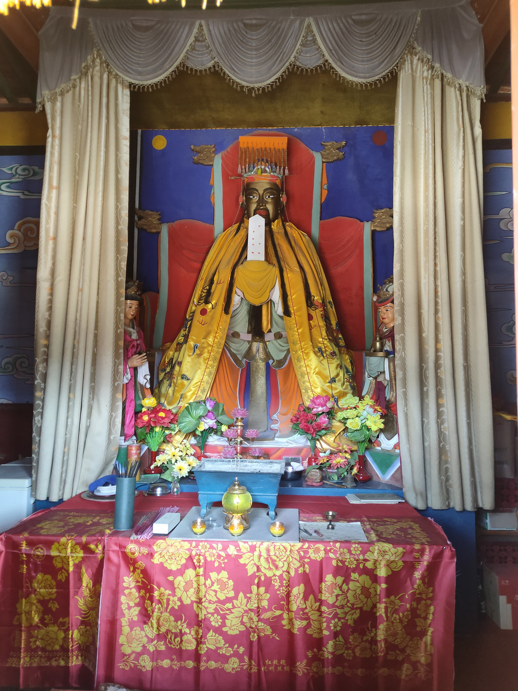 后面的大殿才是供奉玉皇大帝的殿宇,头着冠冕,手持牙笏,身披黄袍。其实这个形象与我印象中的玉皇还是有一些差距的,看起来倒更像是人间帝皇。