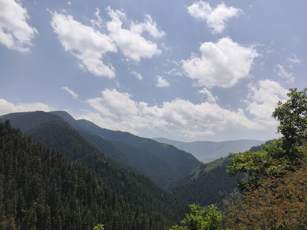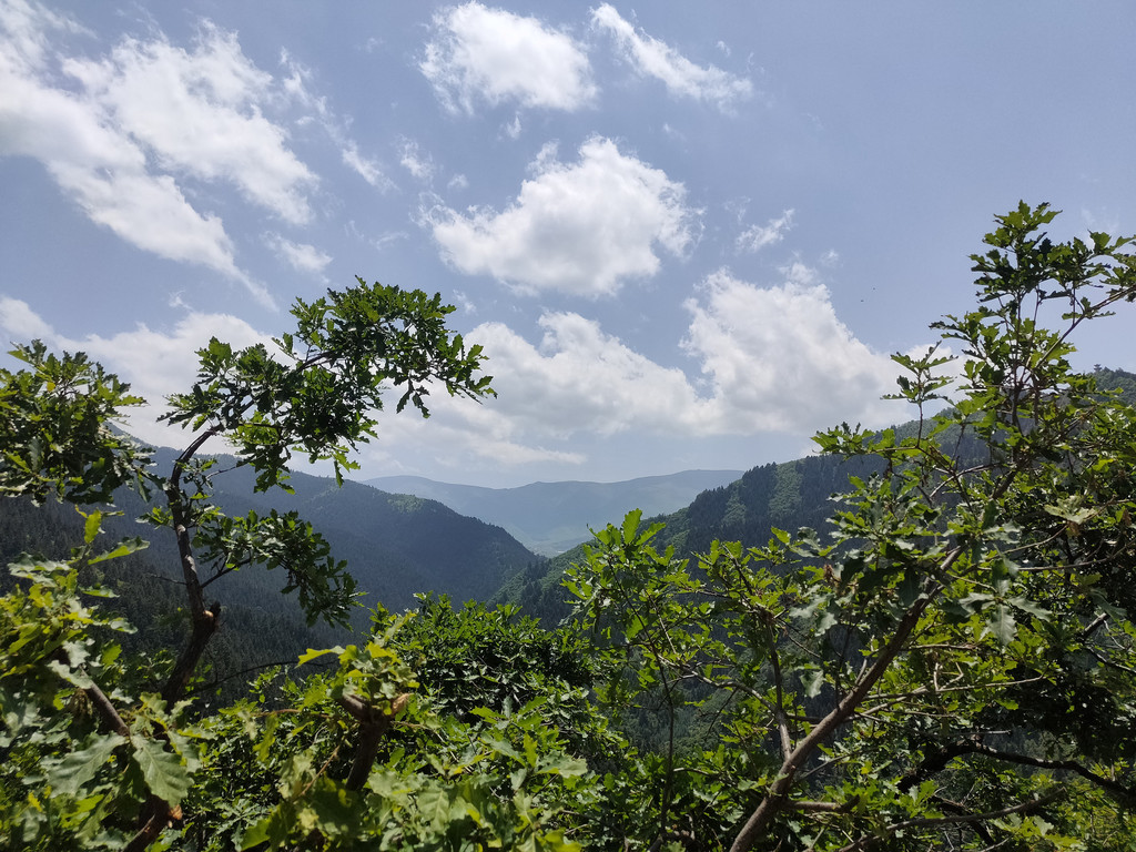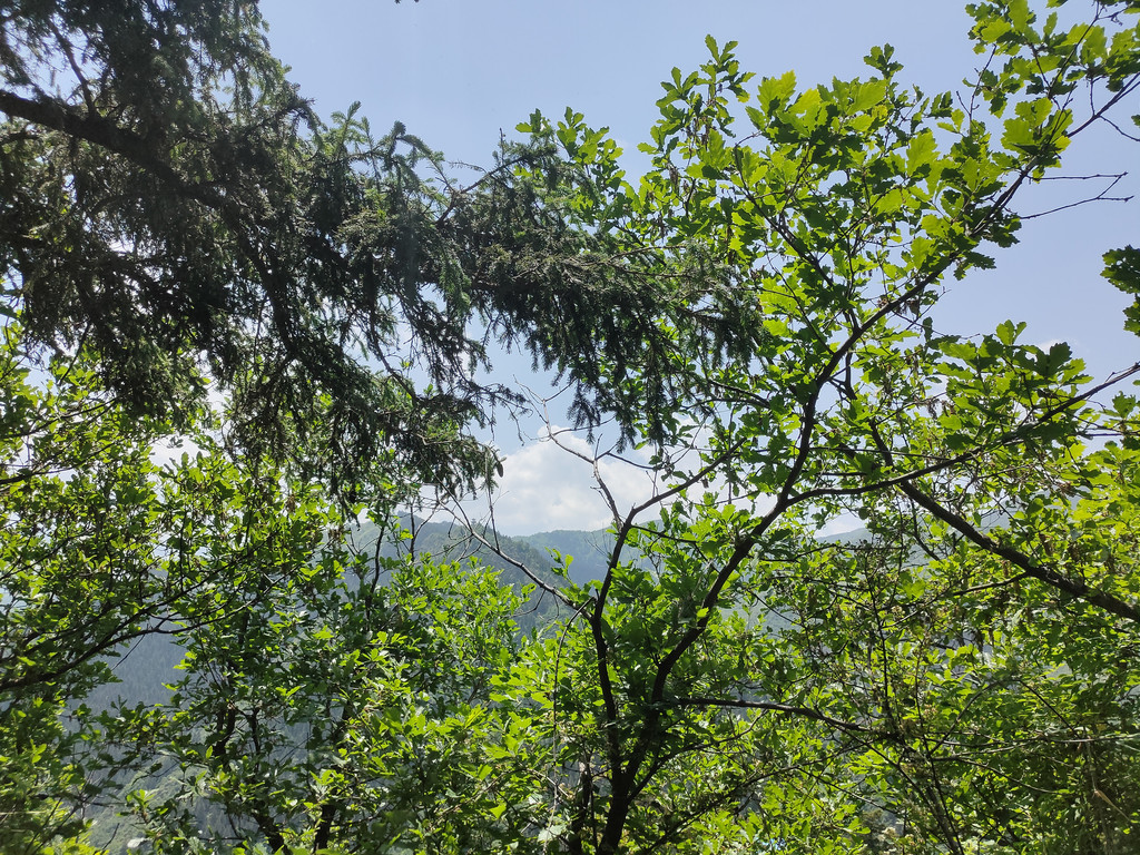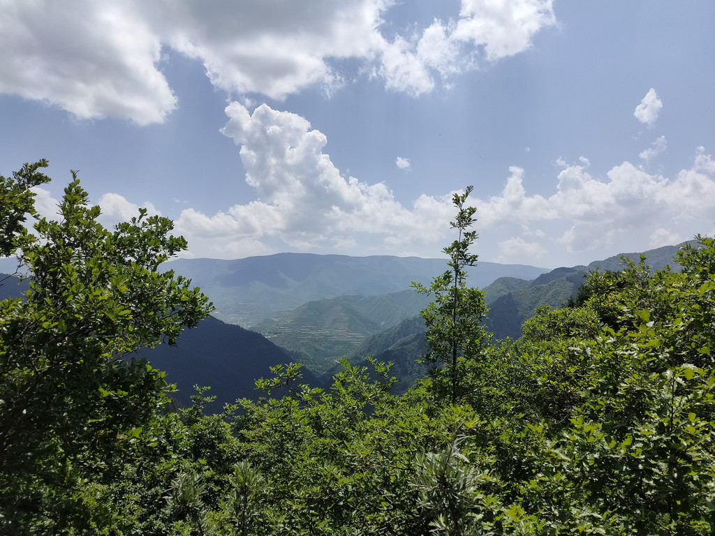 当然,在山顶上一览群山,自有一种豪情出胸臆。可惜的是另一侧通往山下的路被封住了,原以为可以从里前往栖云山的。无奈之下,只能原路返回,恋恋不舍地又团团看了一遍山景。这个时间,也就看到另有一人登顶,原本这条栈道走的人也不算多,再加上登至一半就放弃的,真登顶的也就寥寥无几了。