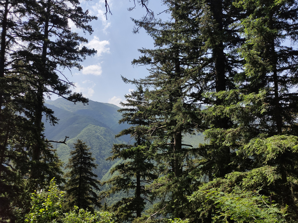 大树掩映着一条台阶,上书“龙门”。两旁各有一株大树,应该还是云杉,被称作“夫妻树”。两树对恃,枝叶交叠,仿佛耳鬓厮磨。