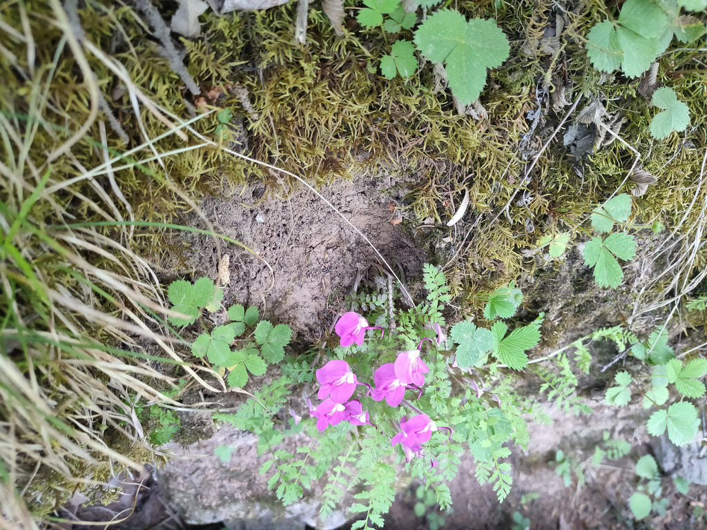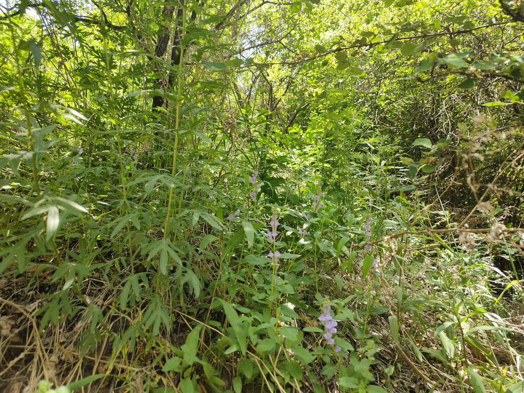 到了这里道路开始分岔,迟疑了一下,我还是选择了继续登山。路旁的野花开得清秀可爱,很快又看到一座殿宇。