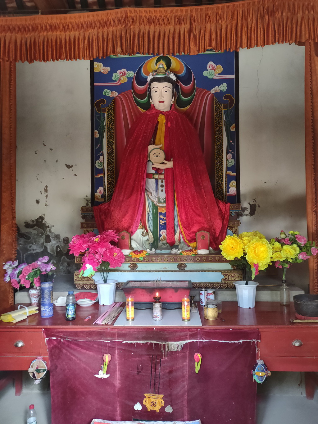 我一直以为玉皇殿是供奉玉皇大帝的,虽然可能不如三清殿,但也应该是道观的主殿之一,规模自然非同一般。可是走进去却发现此殿并不大,正中是一尊仙道的坐像,身披大红披风,宝相倒是慈祥。