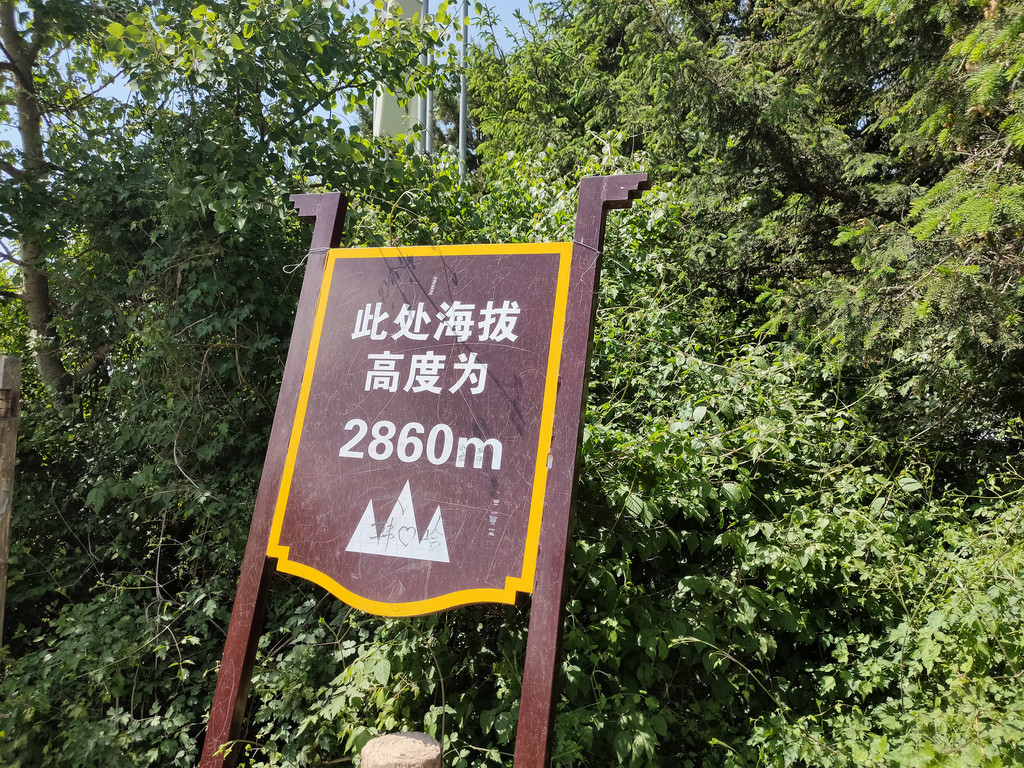 终于登上莲花峰,不免有些失望。山顶只有一间简易的屋子,显然并不是什么景点。一旁标示了“此处海拔高度为2860m”,算是见证我们登顶了。