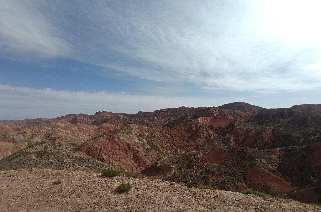 让我很惊讶的是,这个称作水墨丹霞的地方远比我看到的图片美太多了。依然是广阔无垠的山脉,依然是色彩多样。尤其是找了一个没有什么人的地方拍了几张照片,一个人在山间发呆时,感觉这个世界是那么的充满未知。