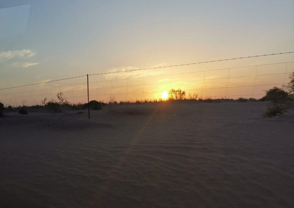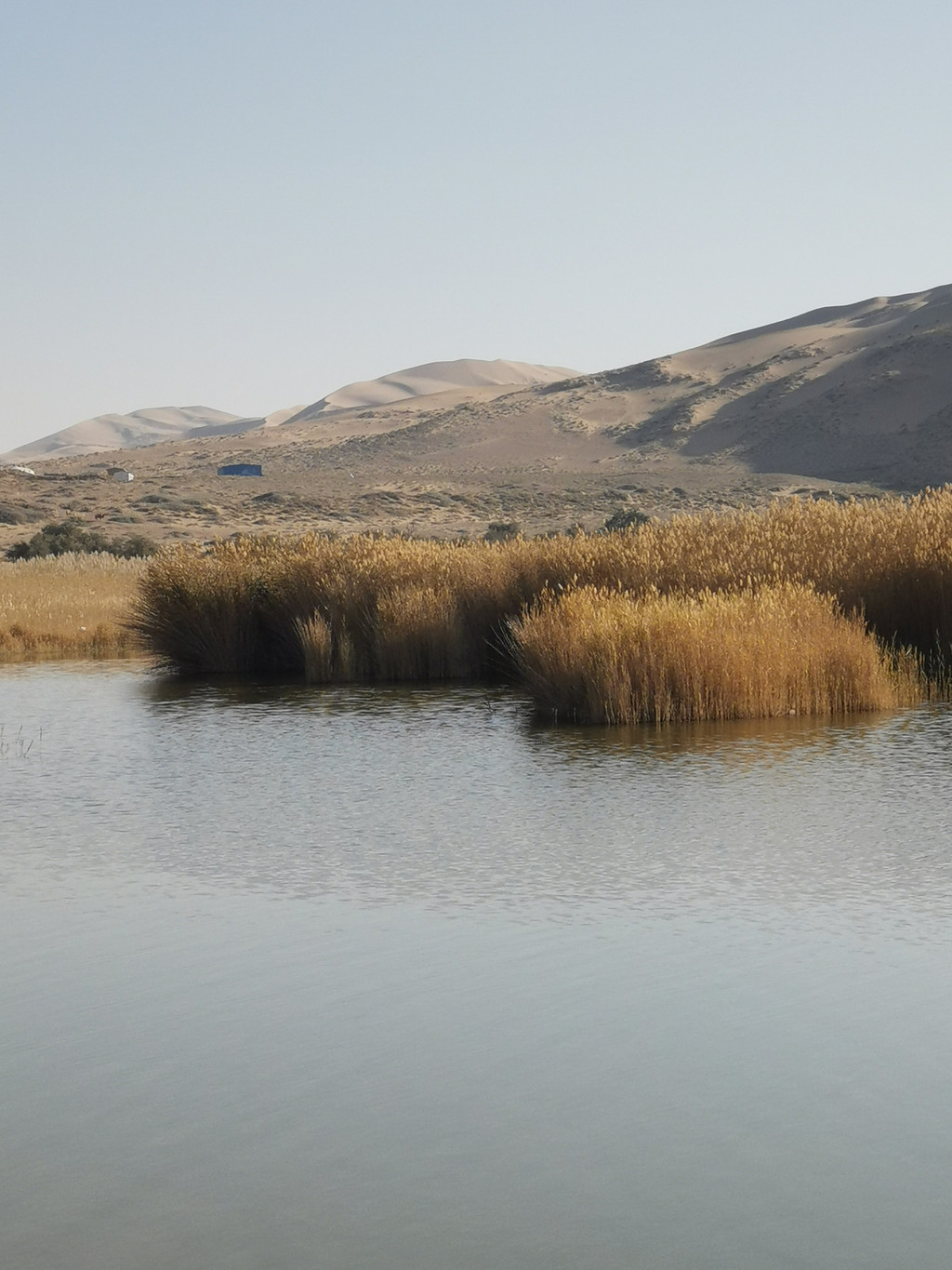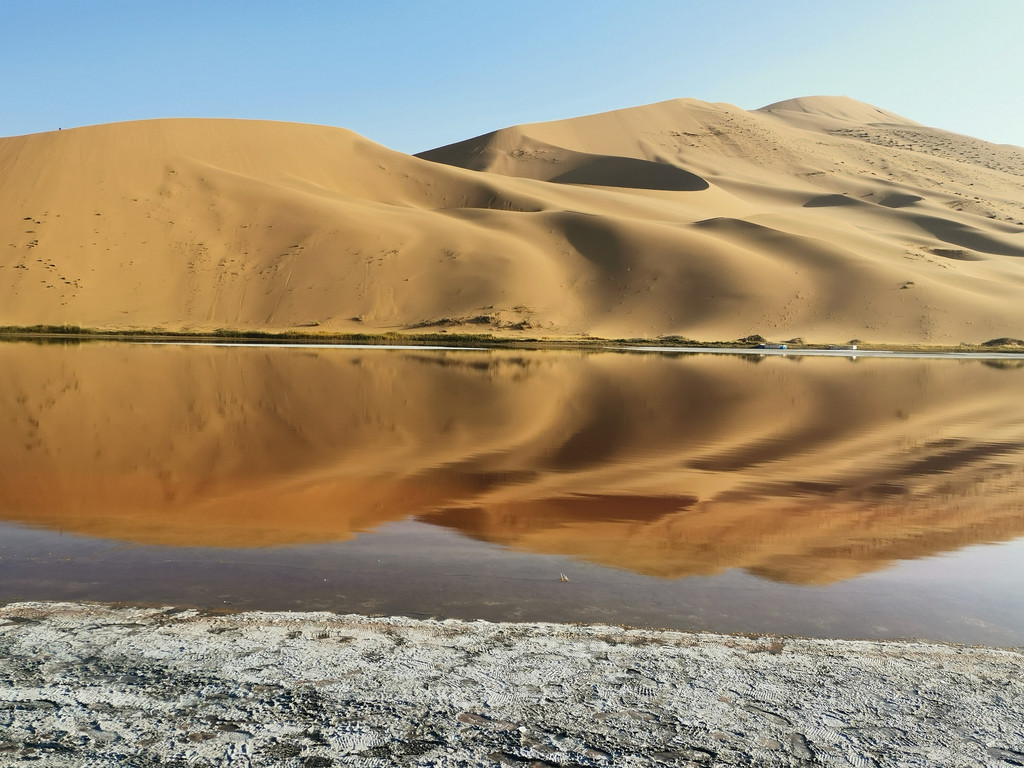 中巴7点半准时出发,行程540公里,于下午三点半到达甘蒙游程的第一个景点,内蒙阿拉善盟的巴丹吉林大沙漠。到此方知,这个沙尘飞扬的沙乡之地,2020年入选世界自然遗产预备名录,被誉为世界第三大沙漠。