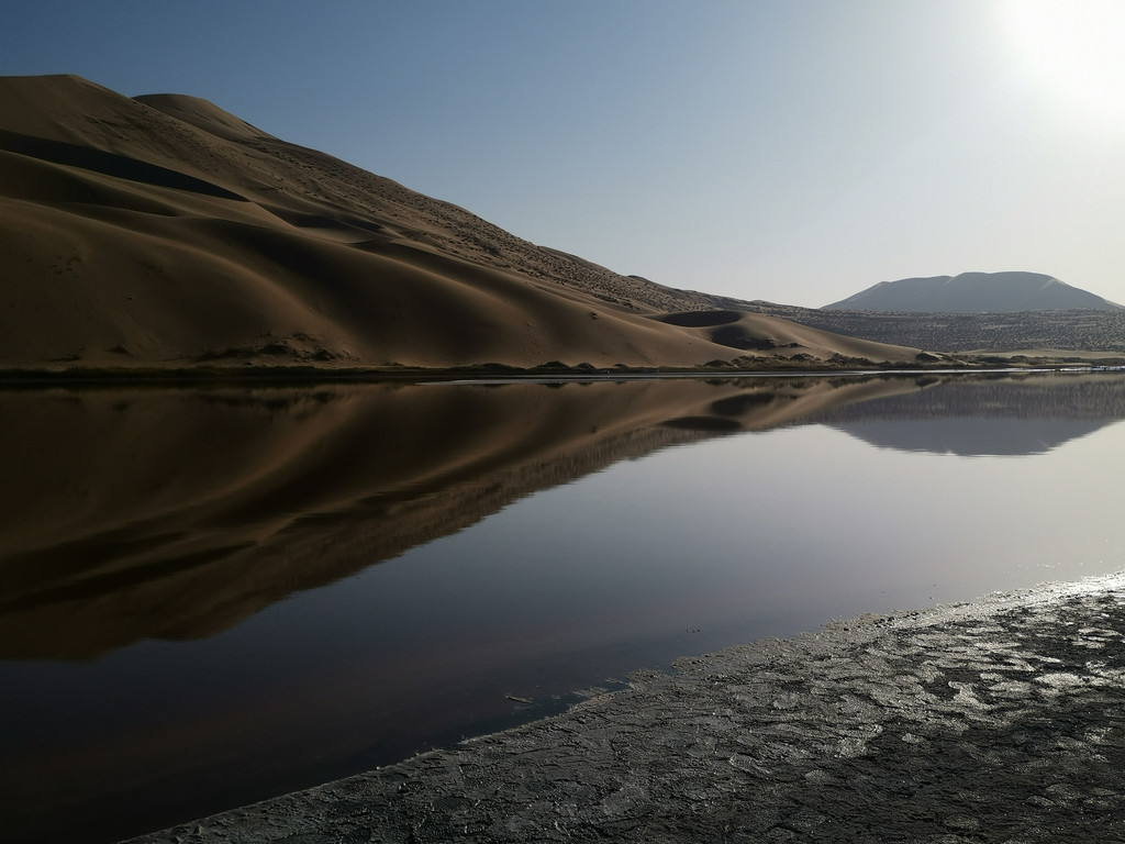 这个景区实在太大,要遍历全园,恐怕至少得驾车三天才行。这在沙漠中驾车,还得有适于沙漠的越野车才行。否则,轮陷沙坑,会让你哭笑不得,狼狈不堪。旅游宛如人生,也宛如东坡‘金山妙高台诗句所言:“蓬莱不可到,弱水三万里”。那弱水,你顶多取其一瓢或者数瓢小饮而已,哪里能一览无余,哪里能面面俱到。我们在巴丹也就90分钟,能看的地点也就仅有一处,巴丹多处神湖中的巴丹湖一处景点。