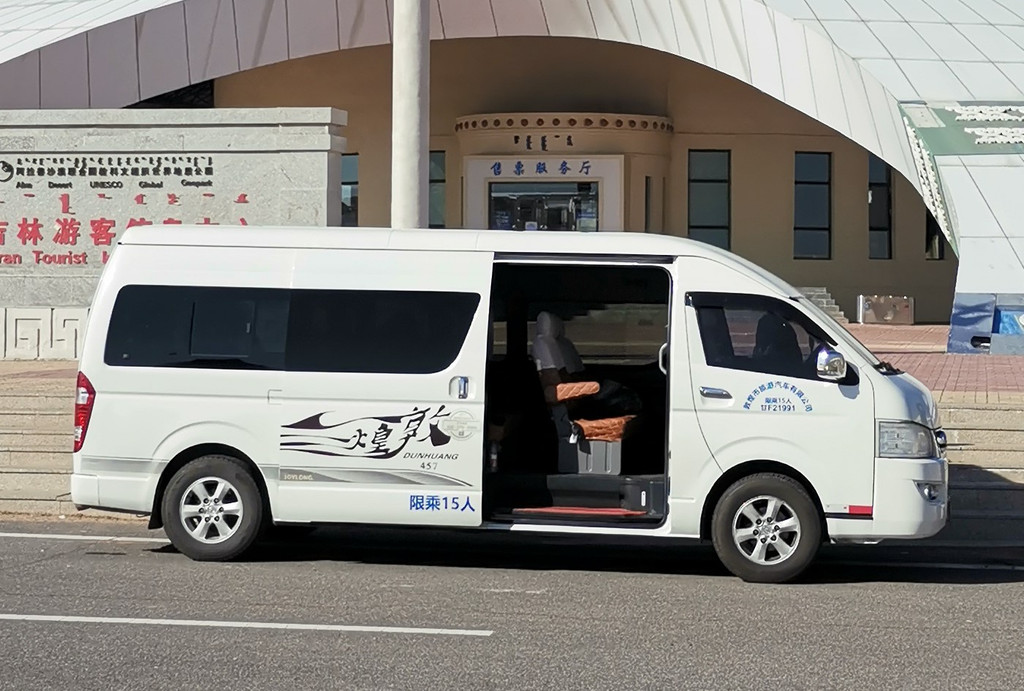 17日清晨,同样的秋高气爽,负责此次行程的马师傅,他的中巴车就停在宾馆的停车场。中巴车上的敦煌标志让人疑惑,怎么是一辆甘肃敦煌的旅行车呢?后来交谈中感悟到,如今的旅游,因为有互联网的沟通技术,能把五湖四海的游客汇集,也能把五湖四海的导游车源汇集。我们一行团友七人,来自四个不同的网络渠道。自然,旅游公司的导游车辆也是来自五湖四海,是敦煌的公司车辆就不足为奇了。