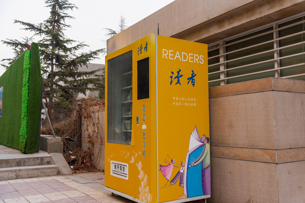 我去的时候,编辑部好像在改造,院子里看起来有点杂乱。门口的自动出售机器,上面熟悉的两个大字让我站在那里回忆了好久童年时光。
